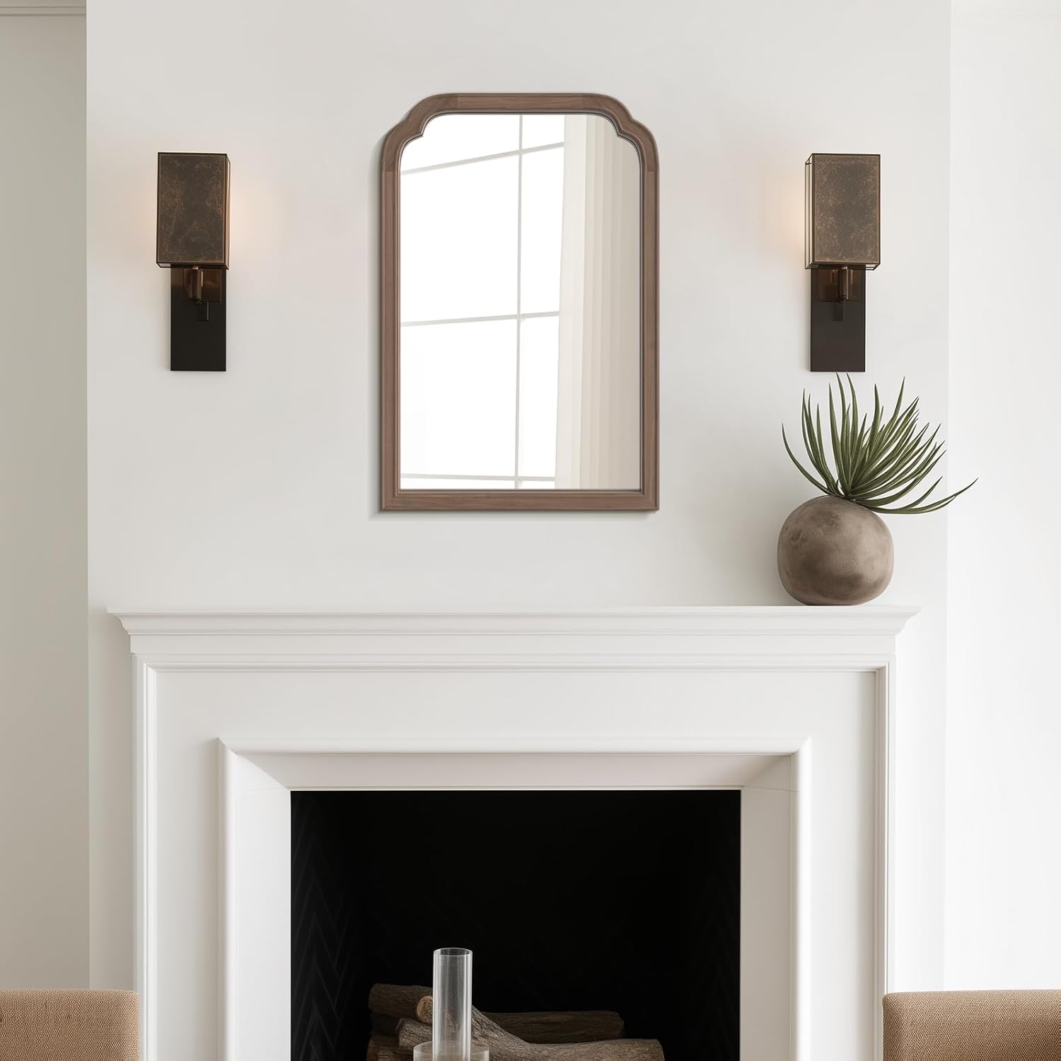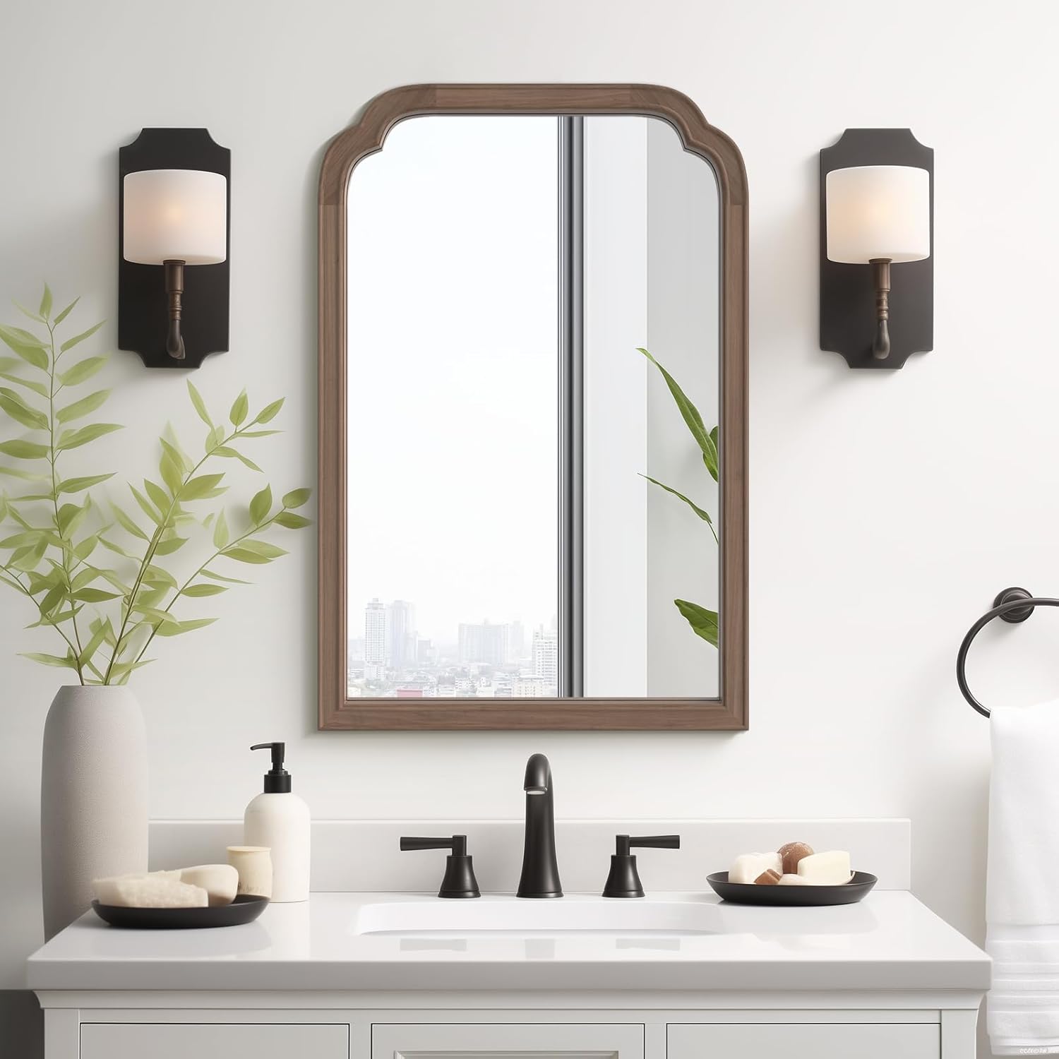 WallBeyond Wood Bathroom Mirrors for Wall Mounted, 20" x 30" Rustic Wood Frame Wall Mirrors Decorative for Living Room or Bedroom Vanity Mirror (Walnut)