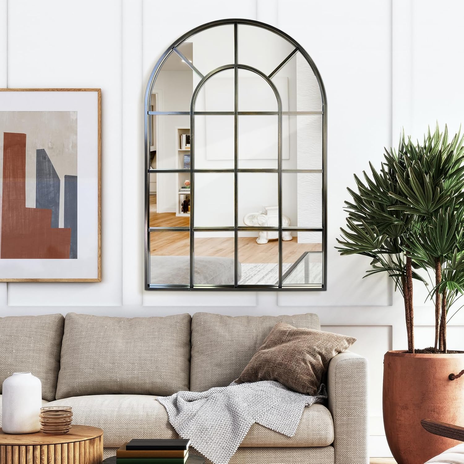 - Art Pane Black Aluminum Alloy Framed Arched Wall Mirror: The mirror features a modern style that can complement any type of room decor, adding a touch of elegance to your room, also great for selfies or pictures in general