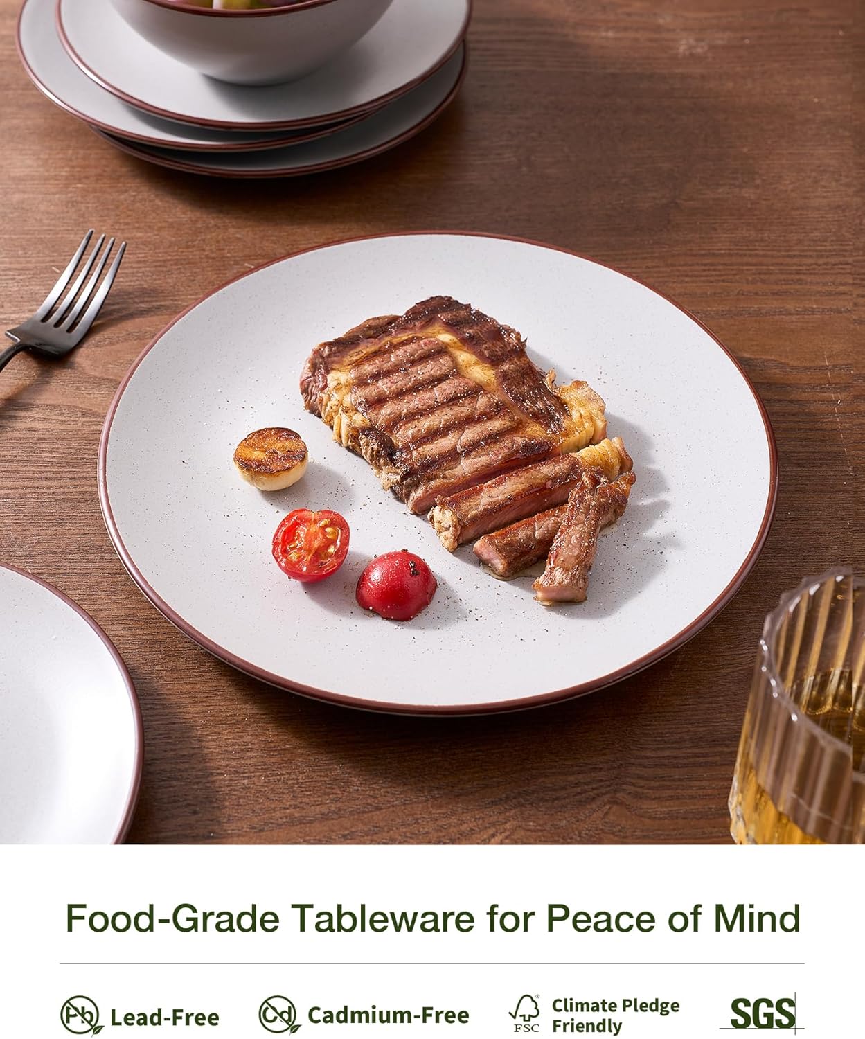 - [Family-safe materials]: Free from lead, cadmium, BPA, and phthalates, this dinnerware is not only ideal for daily meals but also gentle on the environment