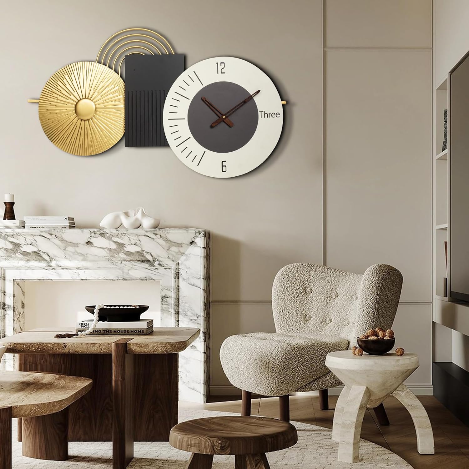 33inch Modern Wall Clock Decorative Clocks for Living Room,Light Luxury Style Timepiece, Metal & Wood Watch Battery Operated Perfect for Suitable for Living Room,Bed Room, Kitchen, Office