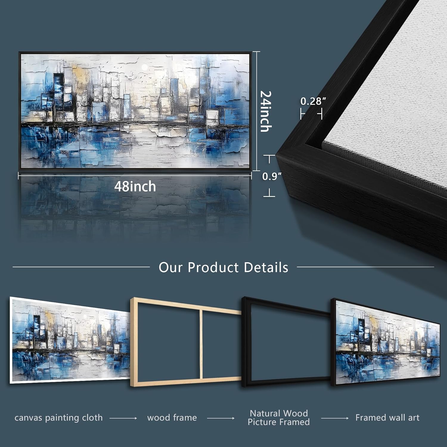 - Framed Wall Art Size: 24x48 inches (60x120 cm) Blue Abstract,Makes a great focal point for a living room, bedroom, office, or any space that needs natural beauty