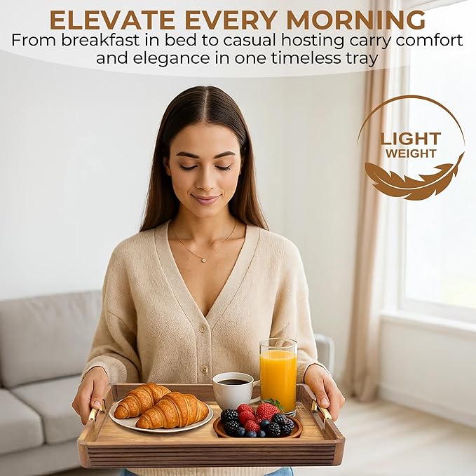 - Premium Acacia Wood & Durable Design Crafted from solid Acacia wood with reinforced edges—this serving tray stands up to daily use without cracking or warping.