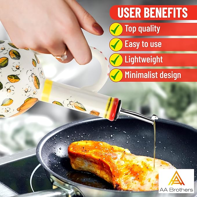 - Crafted With Ceramic: Each stoneware olive oil dispenser is made using durable and smooth ceramic that’s handcrafted and hand painted into a cruet bottle to keep your olive oil protected from UV rays, fresh, and ready to use while helping keep dust and bugs out