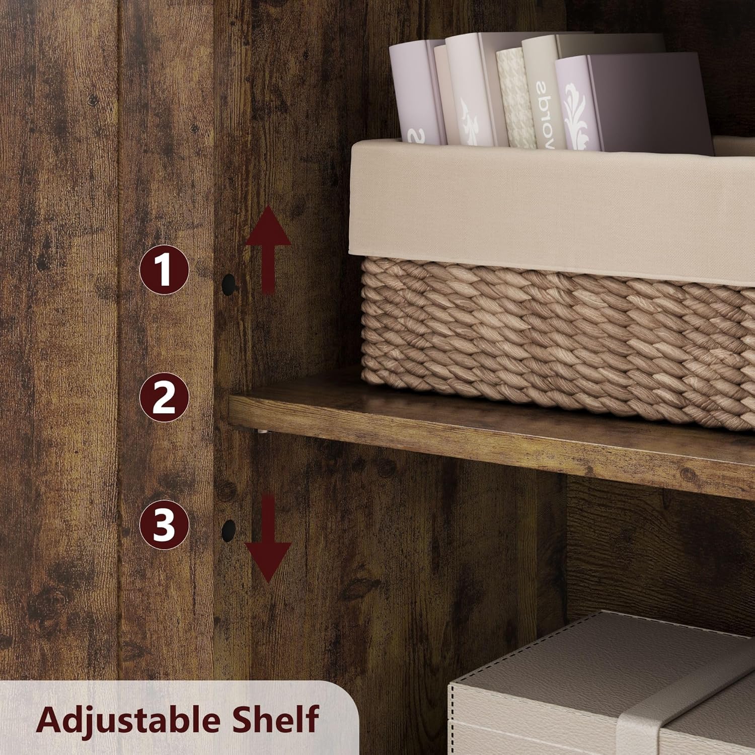 GarveeHome 54in Tall Bathroom Cabinet, Farmhouse Storage Cabinet with Glass Doors and Adjustable Shelves, Freestanding Kitchen Pantry Cabinets, Cupboard for Living Room, Dining Room, Rustic Brown