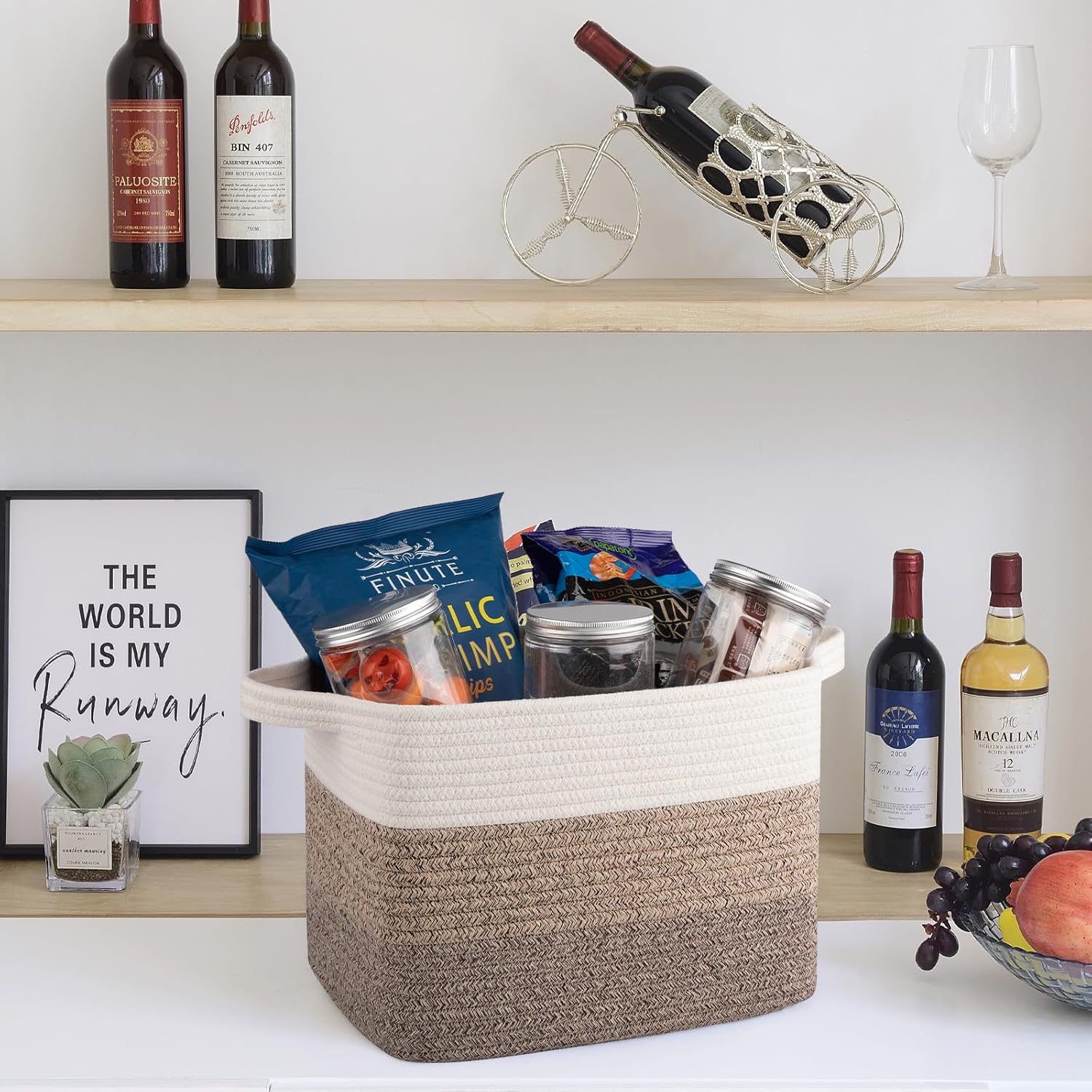 OIAHOMY Storage Basket, Woven Baskets for Storage, Cotton Rope Basket for toys,Towel Baskets for Bathroom - Pack of 3, Gradient Dark Brown