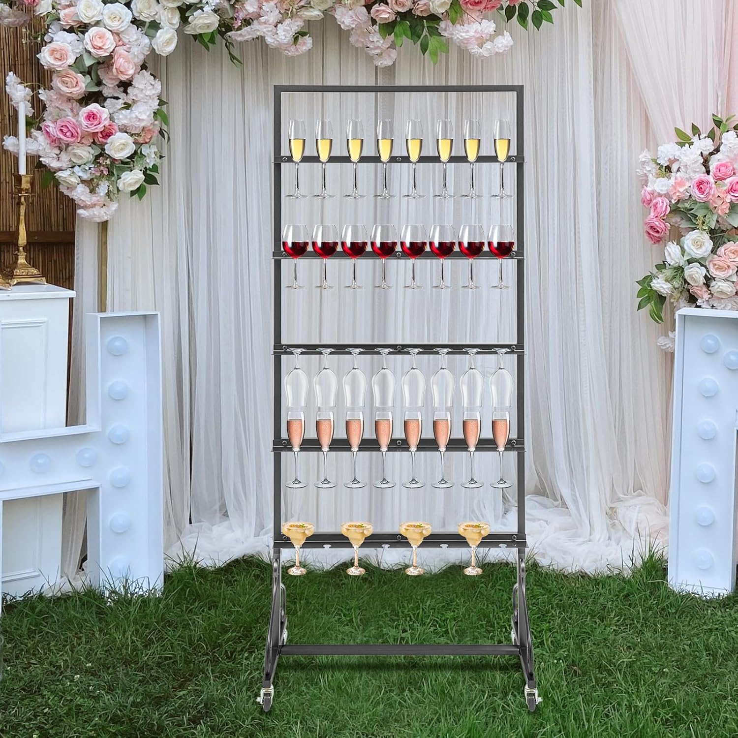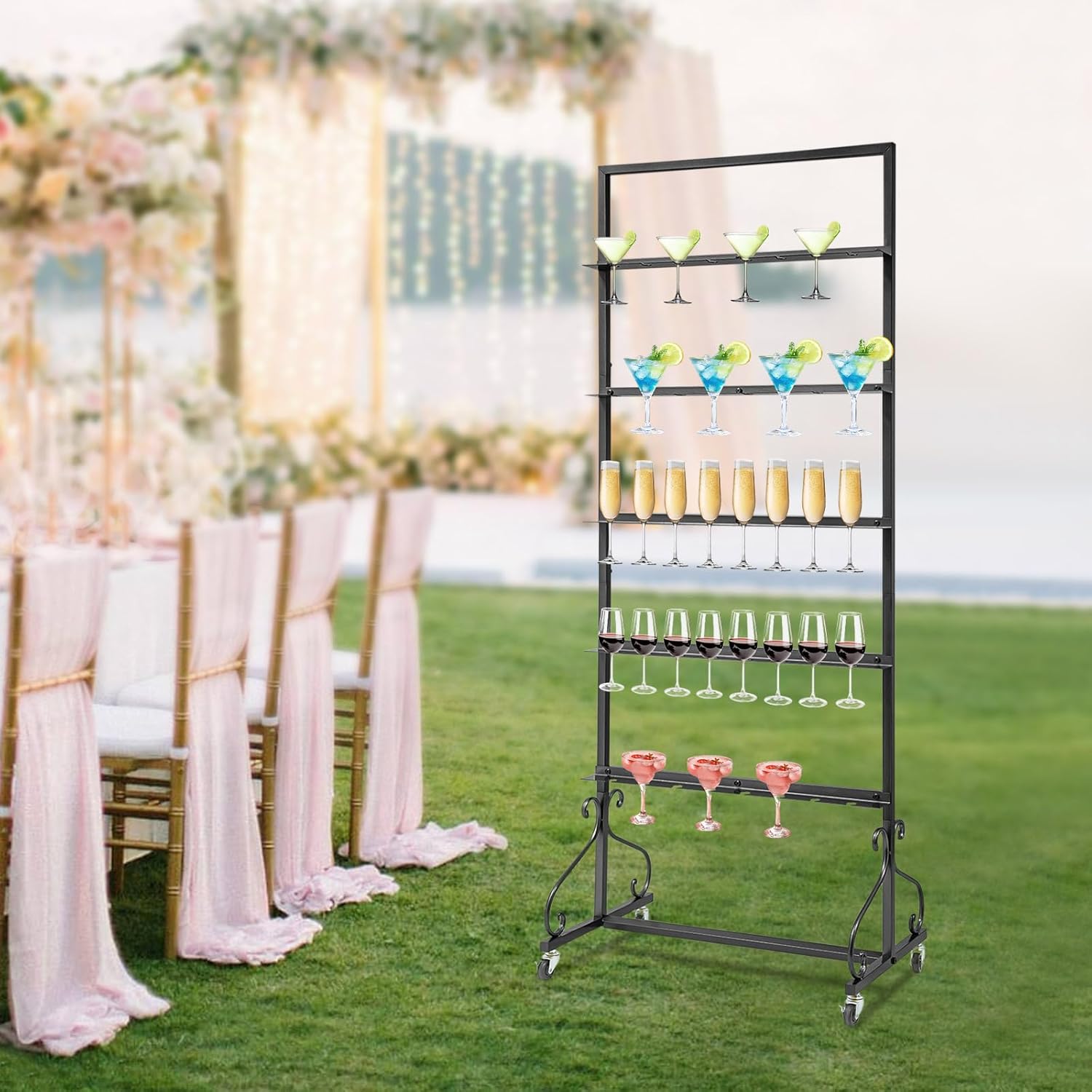 - Large Capacity: The 5-tier rack is able to hold up to 40 champagne glasses, making this product versatile for family gatherings, wine tastings, holiday get-togethers, friend parties, and other events.