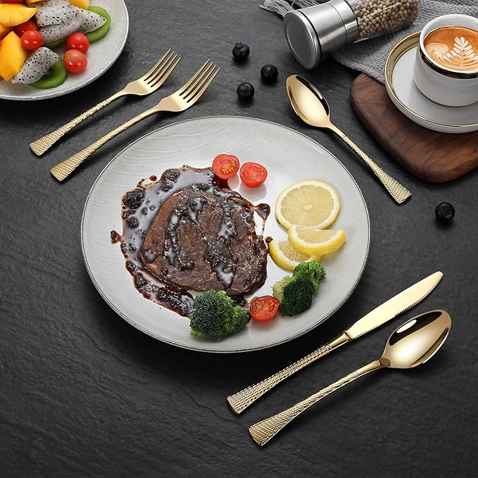 Hammered Gold Silverware Set for 8,Stainless Steel 40-Piece Modern Cutlery Set,Mirror Polished Heavy Duty Flatware Set Utensil Set,Knives Spoons and Forks Set,Dishwasher Safe