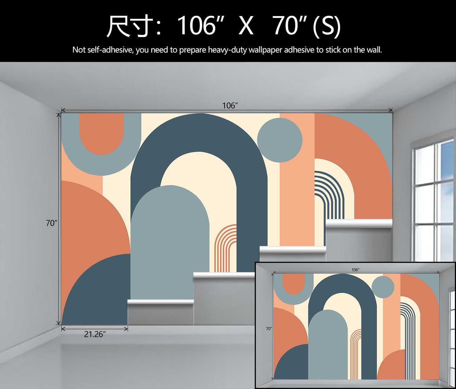 Geometric Shapes Arch Wallpaper Abstract Art Wall Mural for Living Room (Not Peel and Stick)