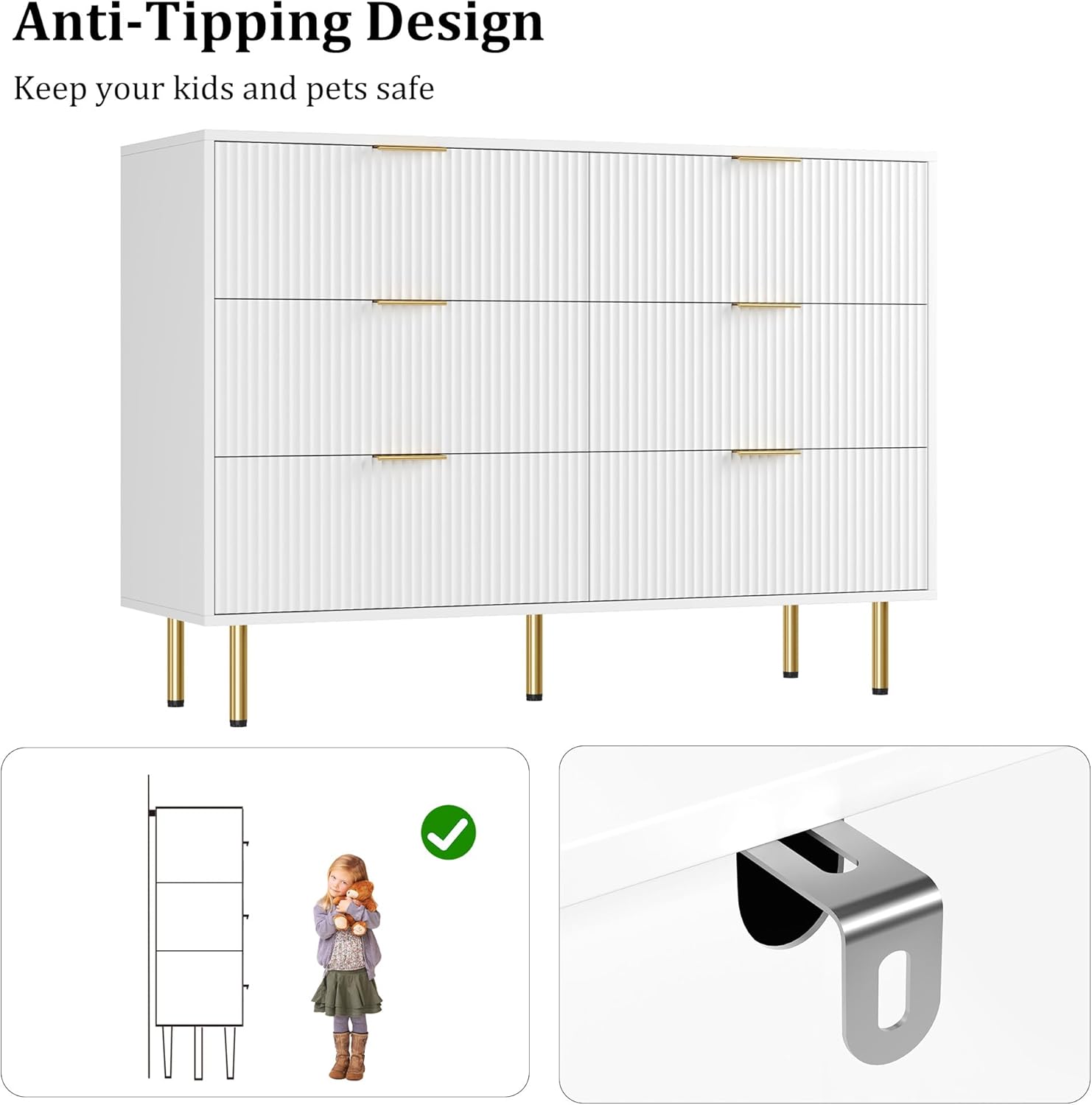 - Elegant Design: Featuring a modern fluted design and chic gold handles, this dresser adds a touch of sophistication to your home decor.