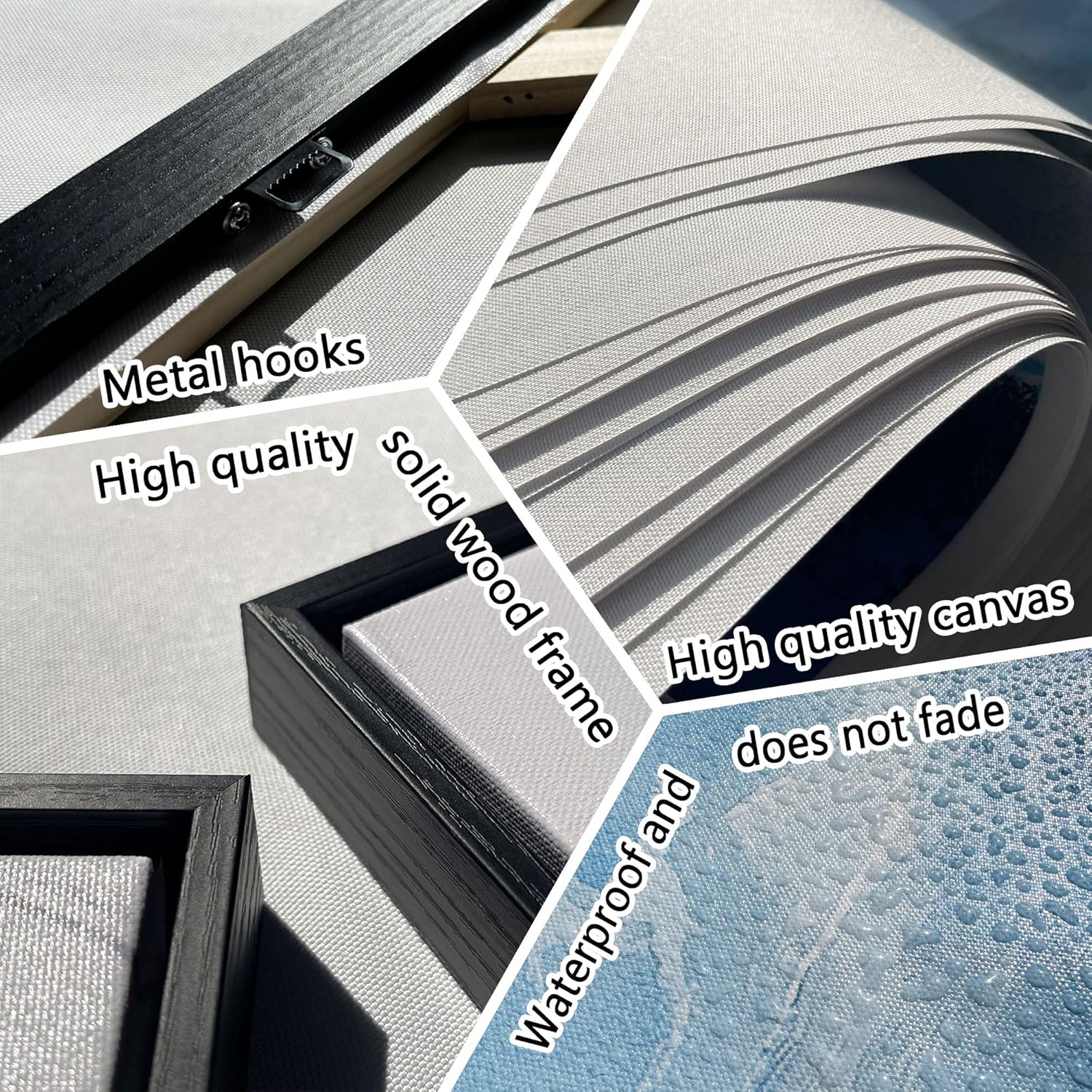 - 【Blue Wall art】The framed artwork measures 40x20 inches and the solid wood frame holds up the canvas and is very sturdy.
