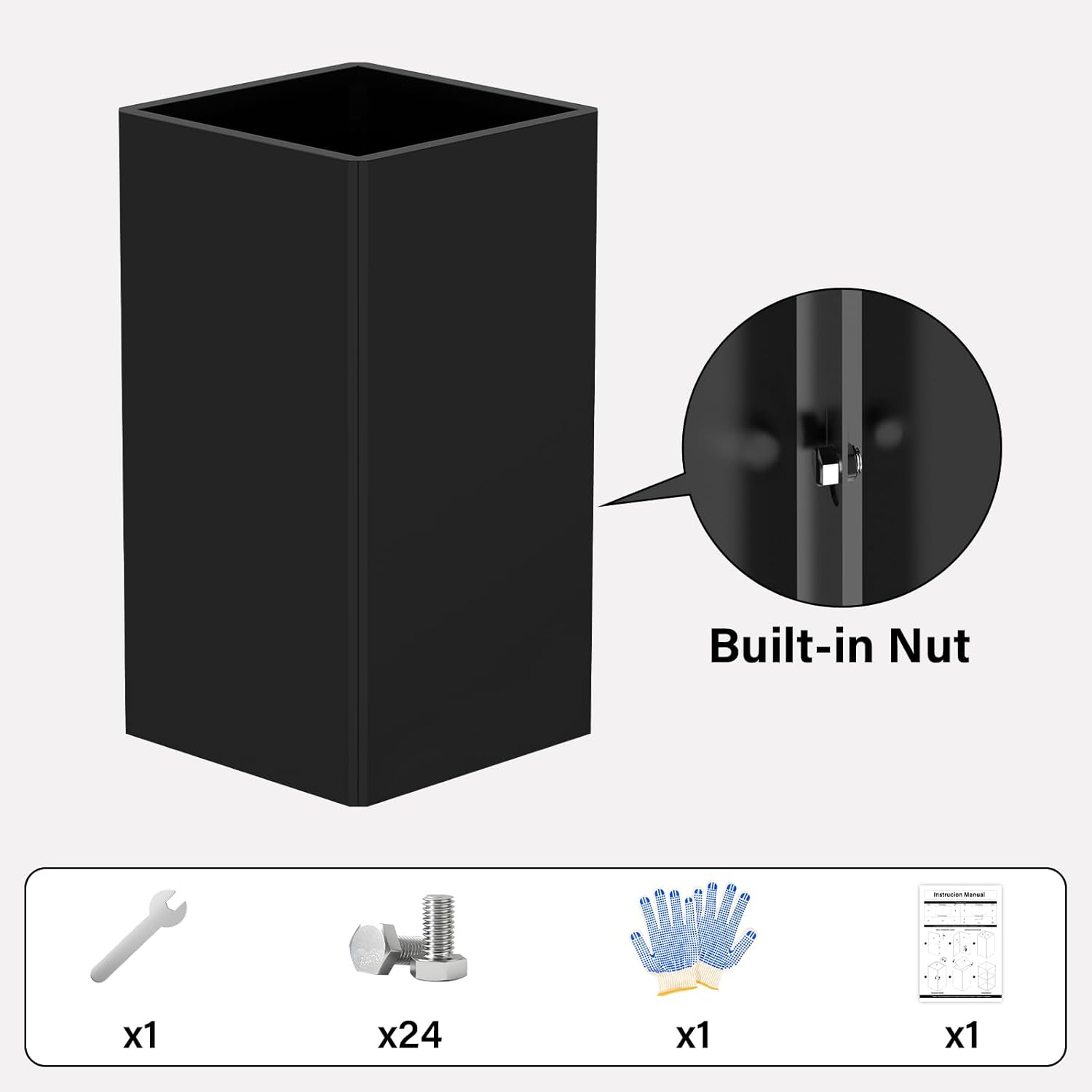 - Modern & Stylish Design: L:14"x W:14"x H:26" tall black planter, with elegant matte color and sophisticated touch, perfect for contemporary and minimalist landscapes. Tall profile maximizes vertical space, also ideal for compact urban gardens or balconies