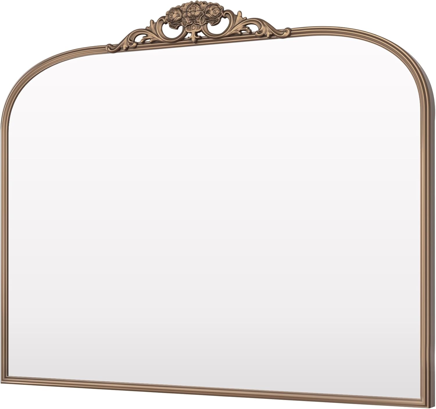 Keonjinn Vintage Gold Mirror, 40" x 30" Large Arched Mirrors with Metal Frame for Wall, Brass Baroque Mirror, Ornate Decorative Mirror for Mantle, Bathroom, French Cleat Mounting