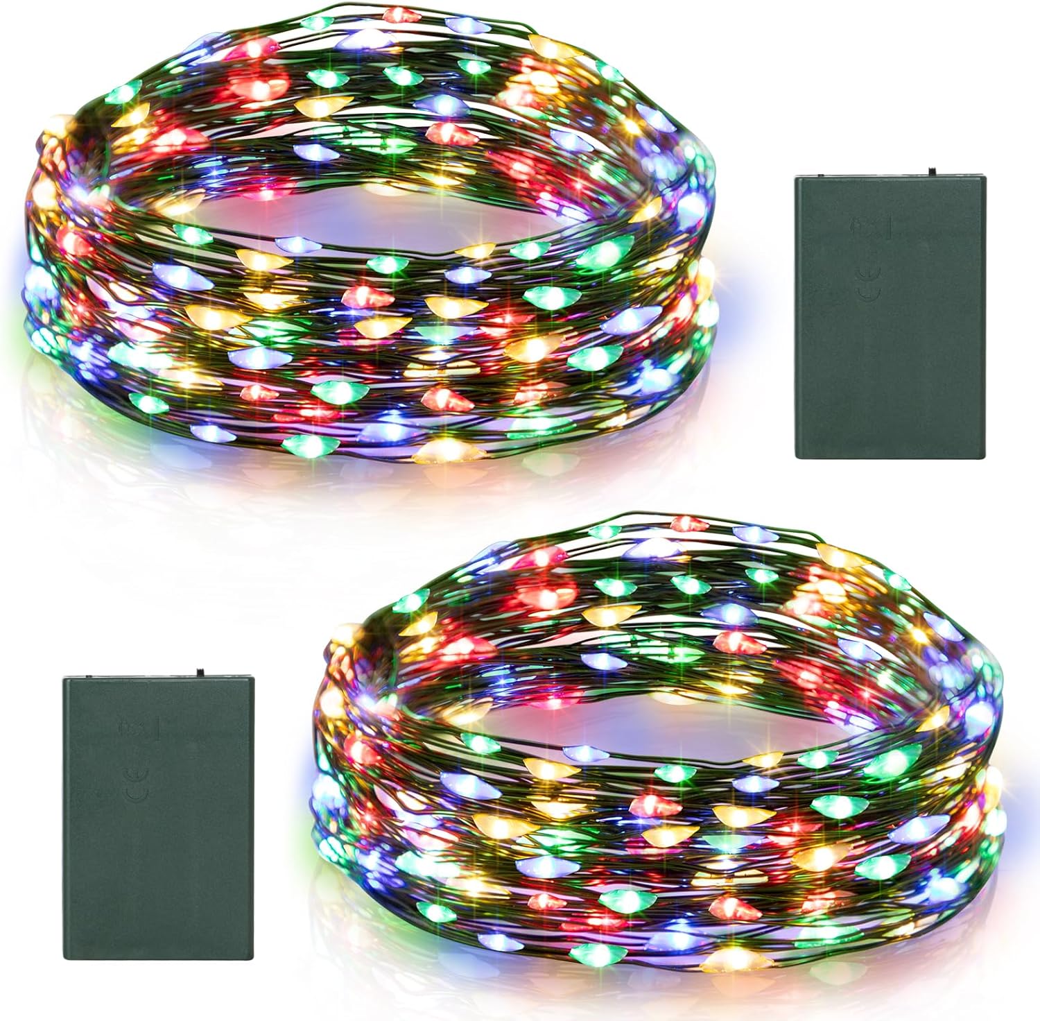 - 2-Pack Fairy Lights: The battery-powered fairy lights are 16.4 ft long (about 5 meters) and come with 50 LED beads. The dark green copper wire is perfect for Christmas decoration
