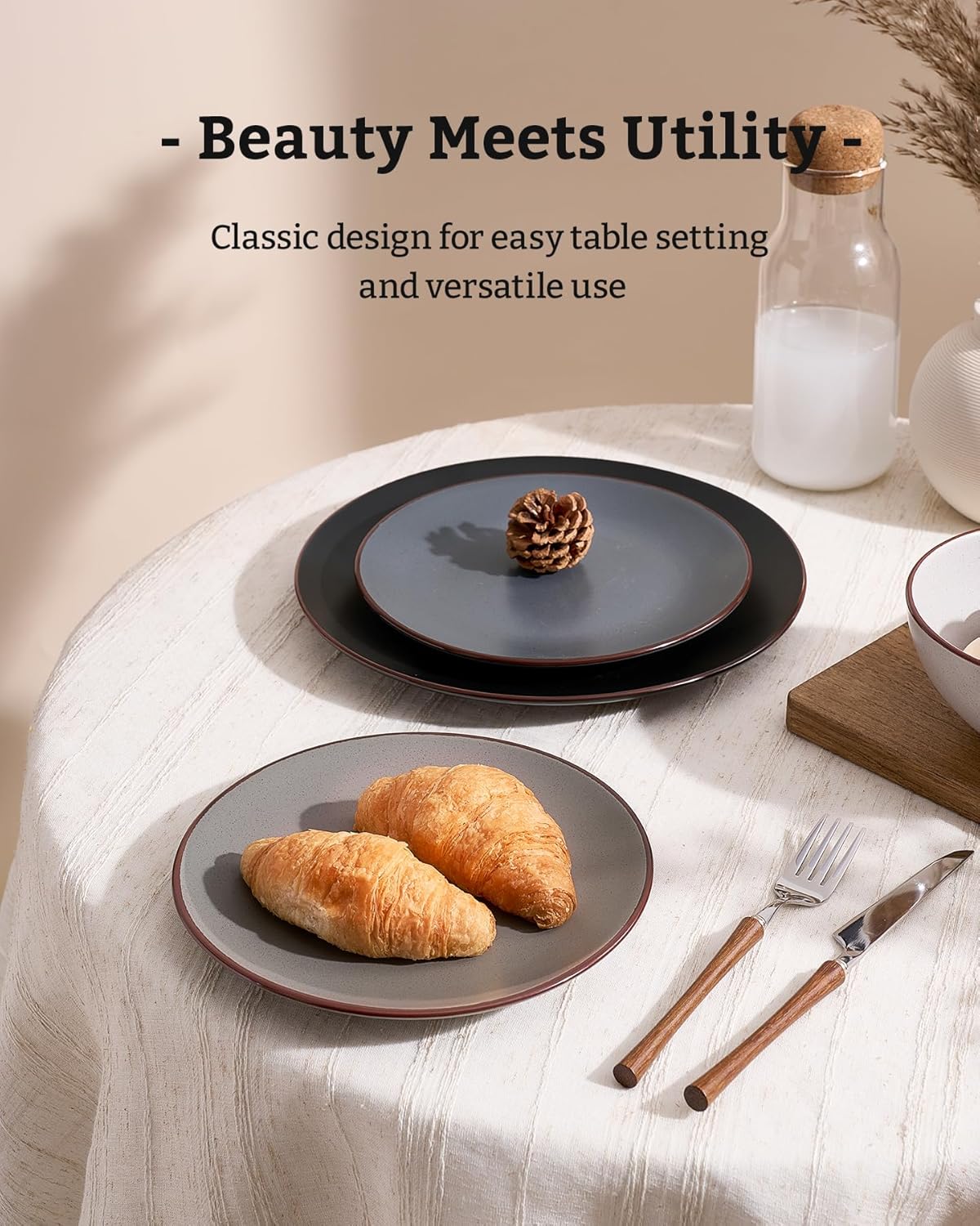 - [Family-safe materials]: Free from lead, cadmium, BPA, and phthalates, this dinnerware is not only ideal for daily meals but also gentle on the environment