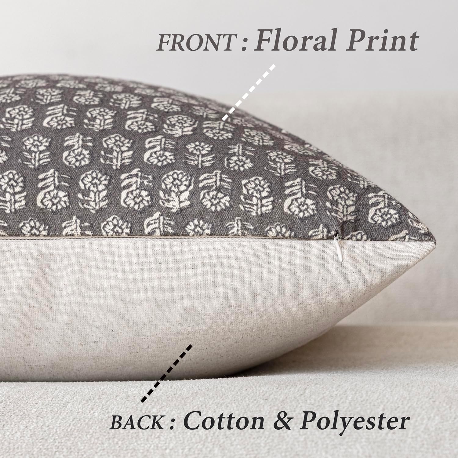 Foindtower Set of 2 Decorative Vintage Floral Print Throw Pillow Covers Neutral Modern Farmhouse Cushion Covers Boho Home Decor for Sofa Couch Chair Bedroom Living Room Outdoor,24×24 Inch,Rustic Gray