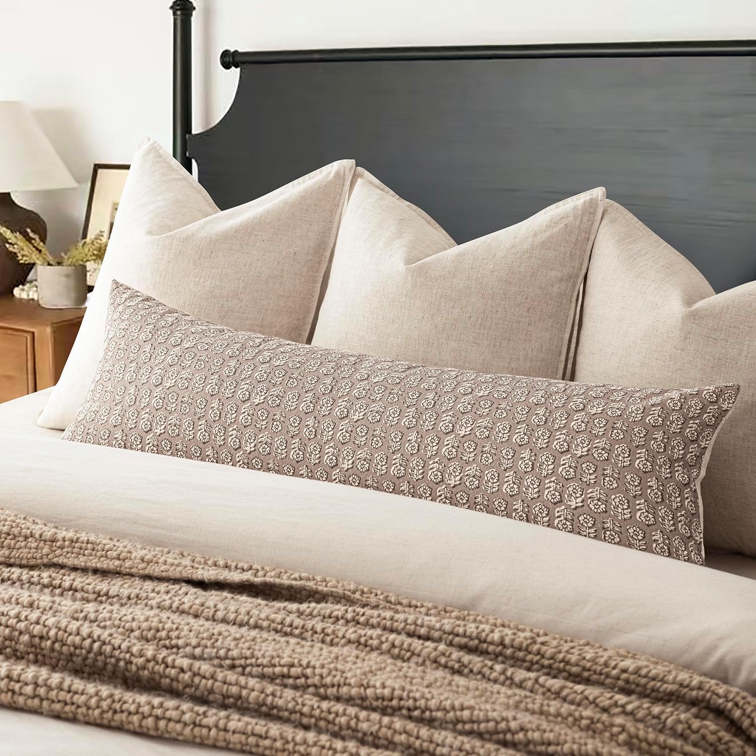 Foindtower Set of 2 Decorative Floral Body Lumbar Throw Pillow Covers Neutral Modern Farmhouse Cushion Covers Vintage Home Decor for Sofa Couch Chair Bedroom Living Room Outdoor,14×36 Inch,Tan Taupe