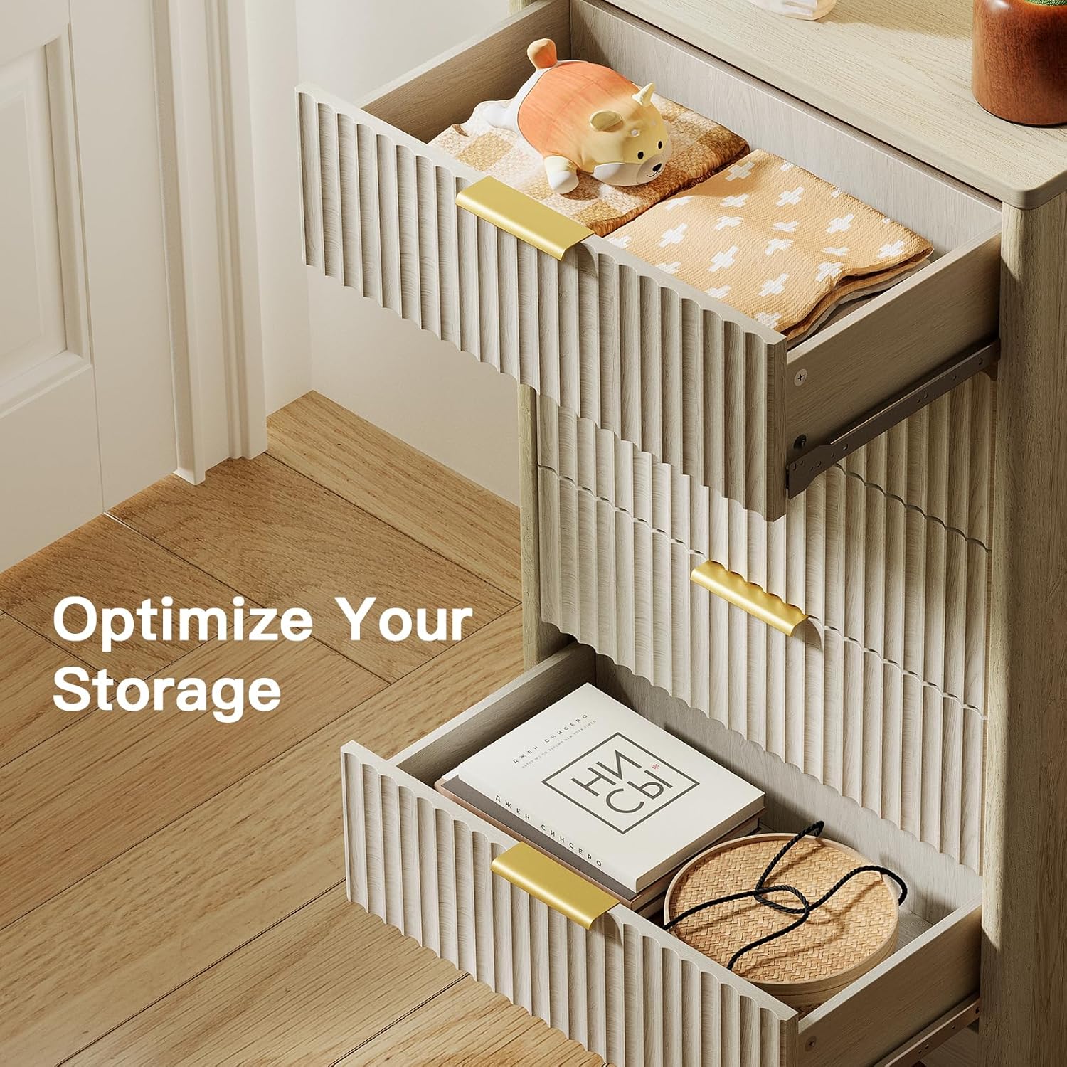 - ăWarm Modern Aesthetic with Fluted DetailingăElevate your space with the refined elegance of this 5-drawer closet storage. The beautifully fluted-fronts paired with a natural oak finish create rich visual depth and warmth, while sleek metal handles add a touch of modern sophistication. Whether placed in a cozy bedroom, welcoming hallway, or casual living room, it instantly transforms your home into a stylish sanctuary filled with calm and character
