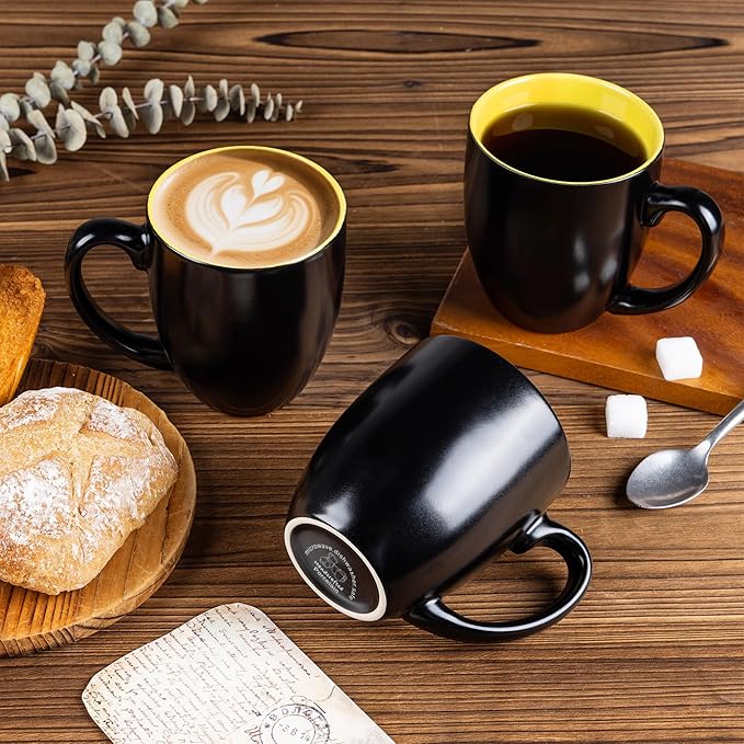 GBHOME 16oz Coffee Mugs Set of 6, Large Ceramic Coffee Mugs for Man, Woman, Dad, Mom, Modern Coffee Mugs Set with handle for Tea/Latte/Cappuccino/Milk/Cocoa. Dishwasher&Microwave Safe,Yellow