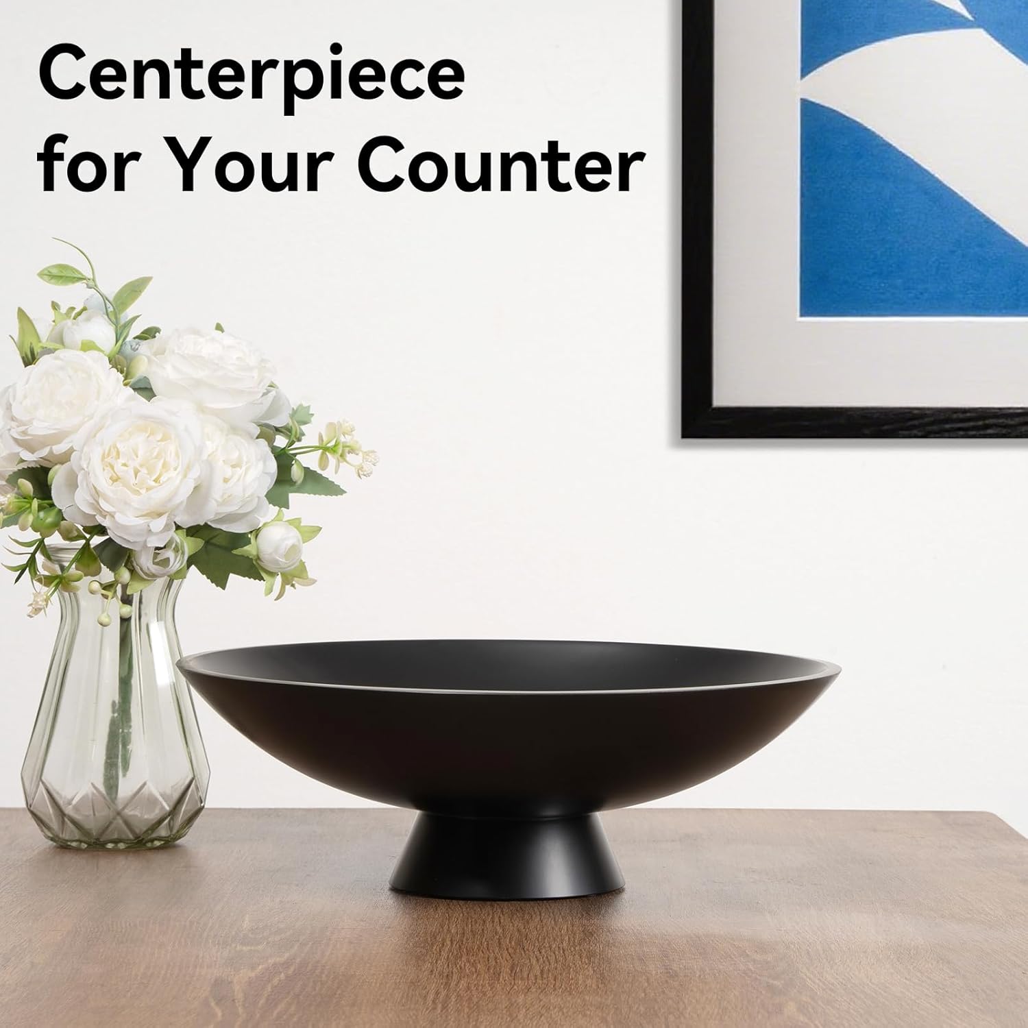 Decorative fruit bowl for Home Decor Large Modern Handicraft Key Bowl for Entryway Table Stylish Centerpiece Purse Bowl Pedestal bowl for Kitchen Counter Coffee Table(Artificial Stone Black)