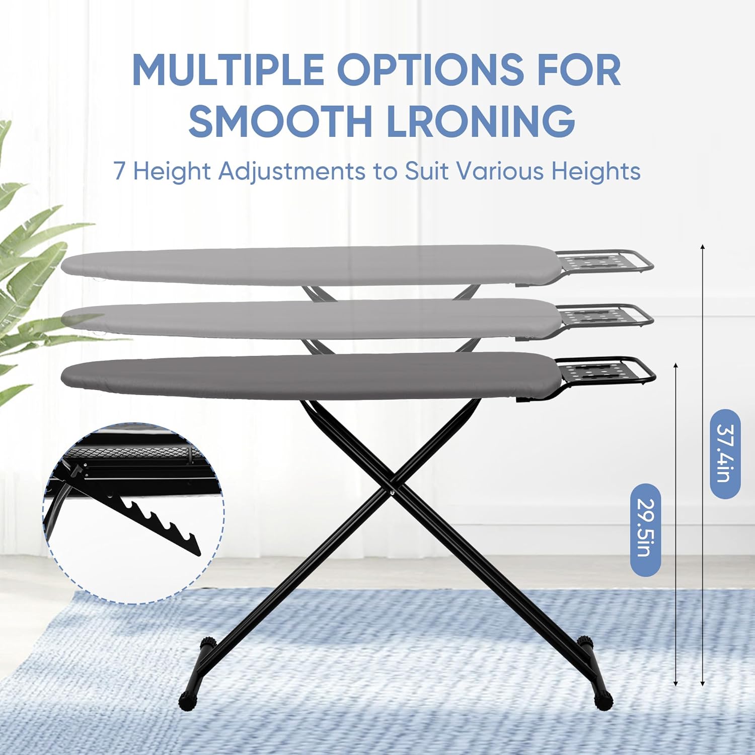 Full Size Ironing Board 47" X 15" with Heat Resistant Cover and Thicken Felt Pad, Safety Iron Rest, Anti-Skid Feet, Height Adjustable, Heavy Duty