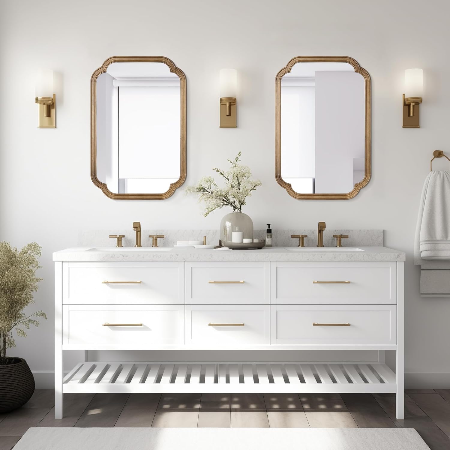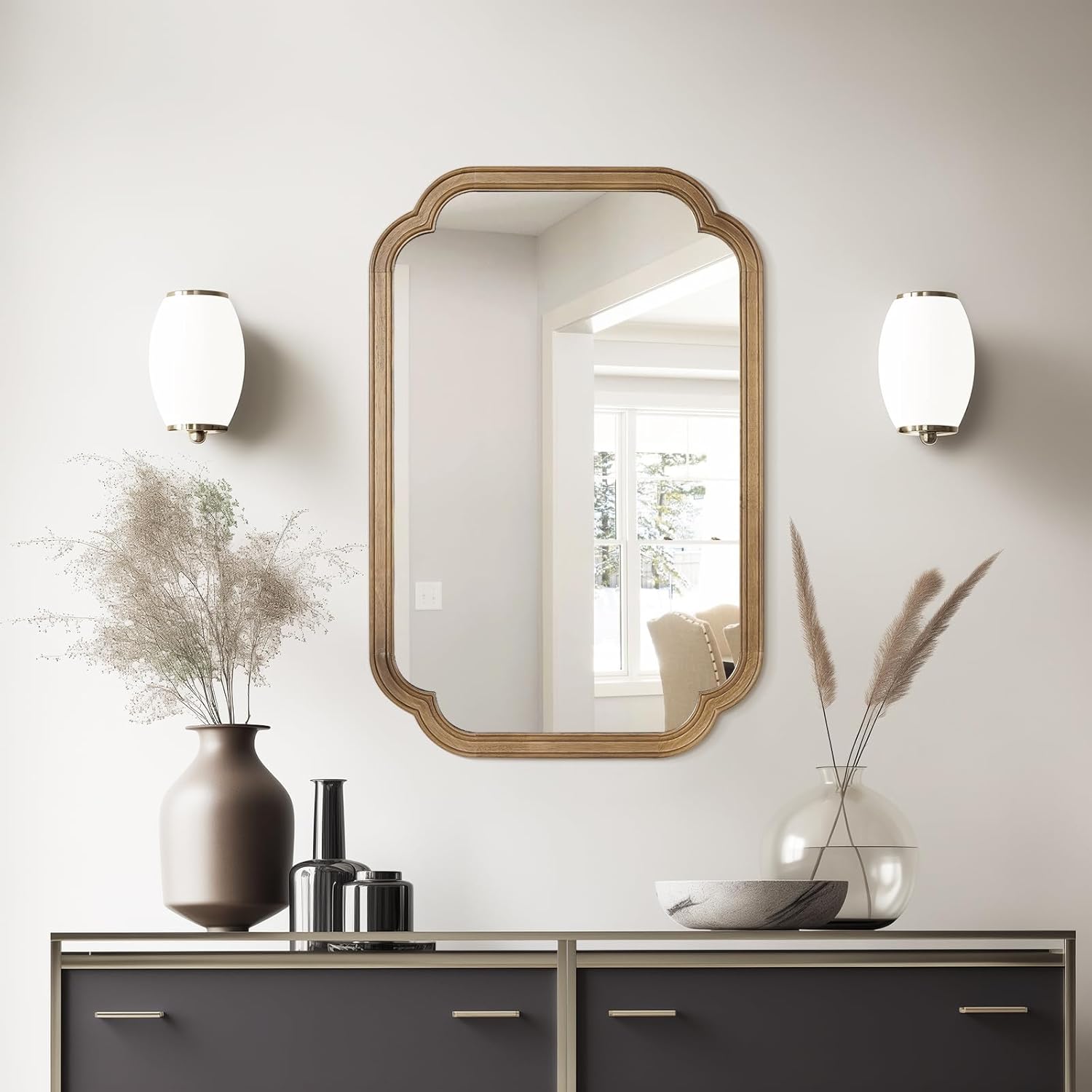 - Decorative Mirror: Modern minimalist style and consistent gorgeous aesthetic design are suitable to decorate any space, Fit farmhouse, bathroom, bedroom, living room, entryway, etc. Visually expand the space, increase the light, enhance the beauty of any room in the home.