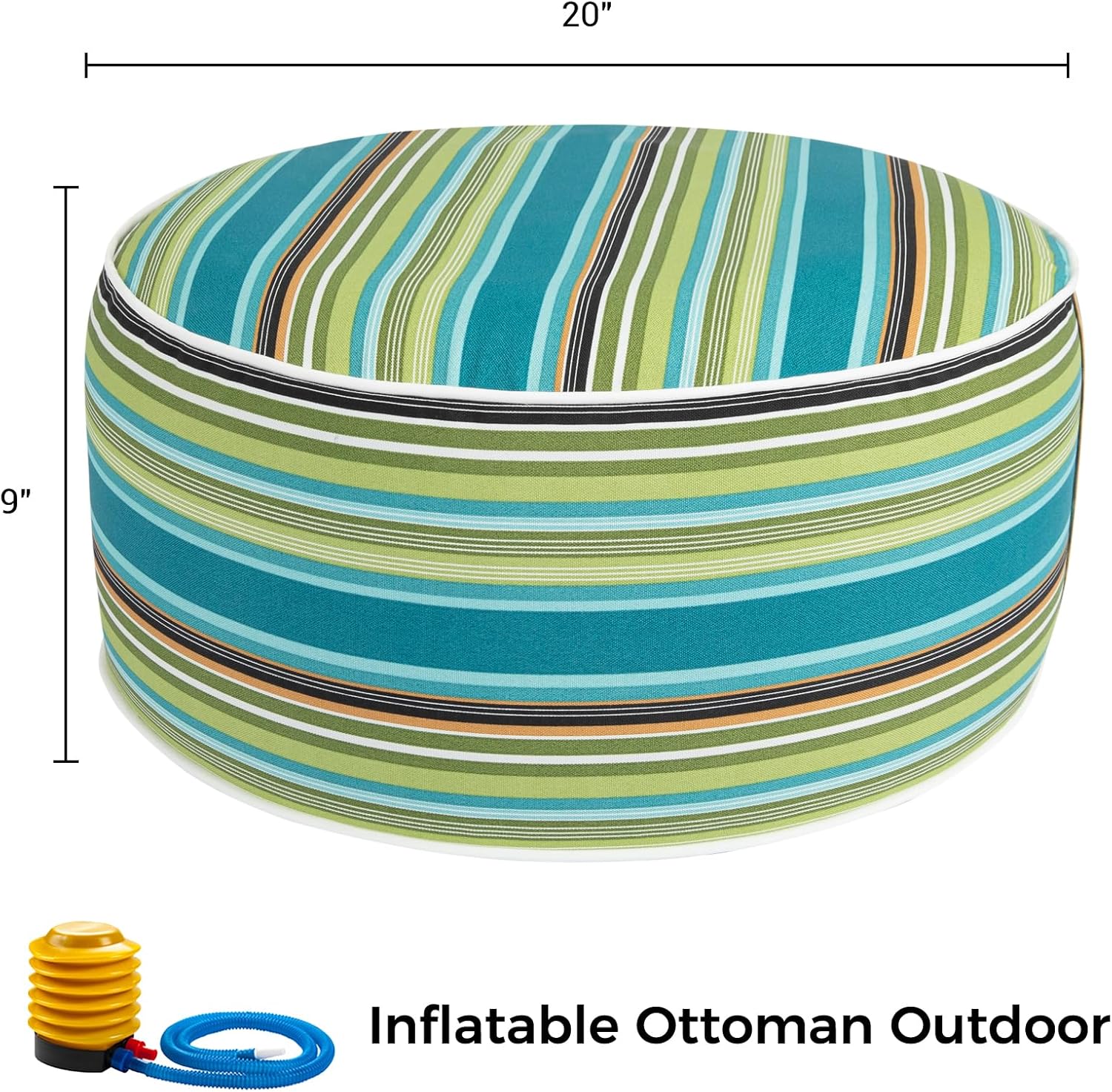 FUNHOME Inflatable Outdoor Ottoman with Air Pump,20"x9" Portable Patio Pouf,Water Resistant,Fade-Resistant,Round Blow Up Footrest Stools for Home Garden Camping Travel(Green Stripe)