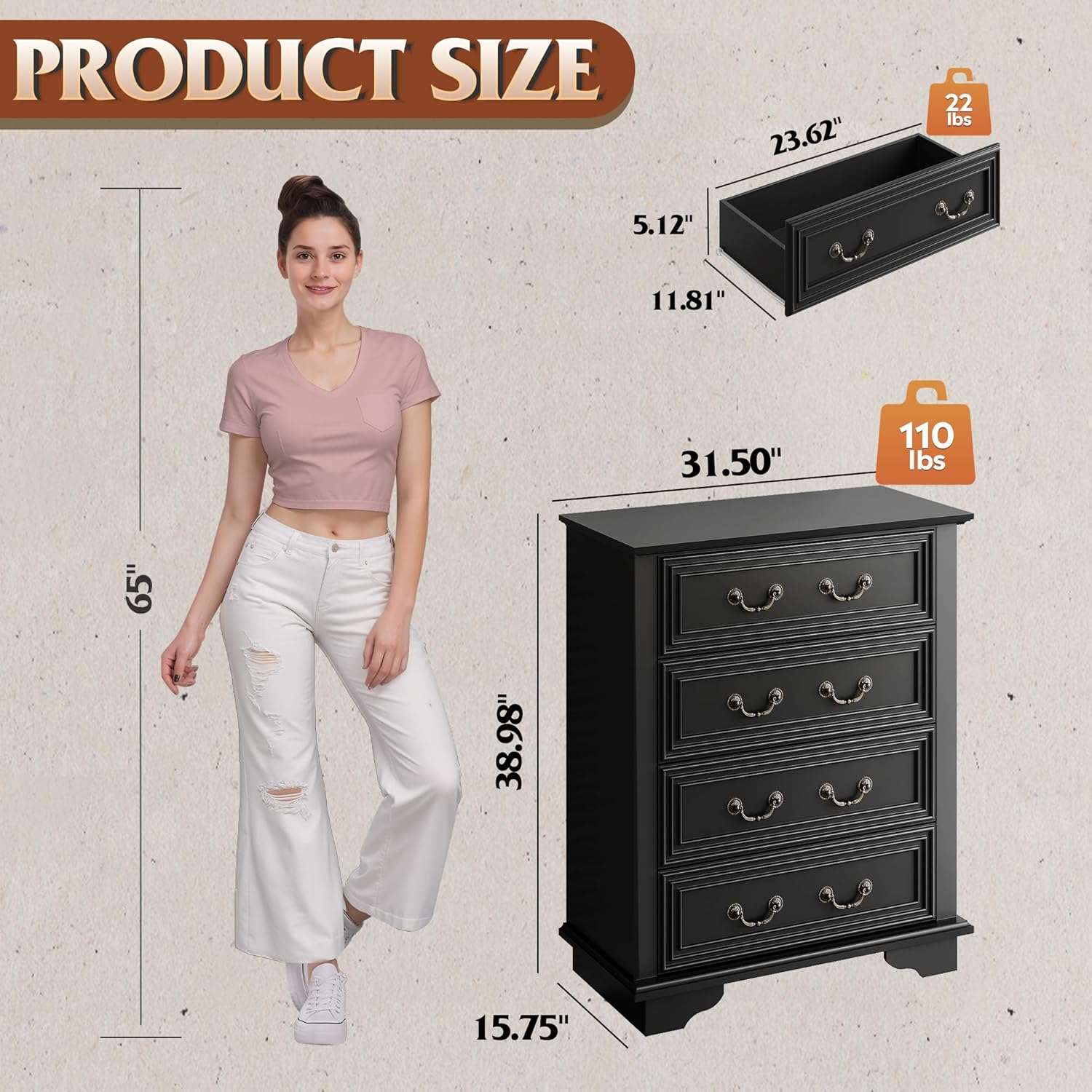 - 🏡【Spacious Storage Space】The bedroom dresser measures 15.75''D x 31.50''W x 38.98 ''H, comes with 4 Large Deep drawers (11.81''D*23.62''W*5.12''H), providing ample storage space for socks/underwear/scarves/blankets/T-shirts/pants and other clothing.