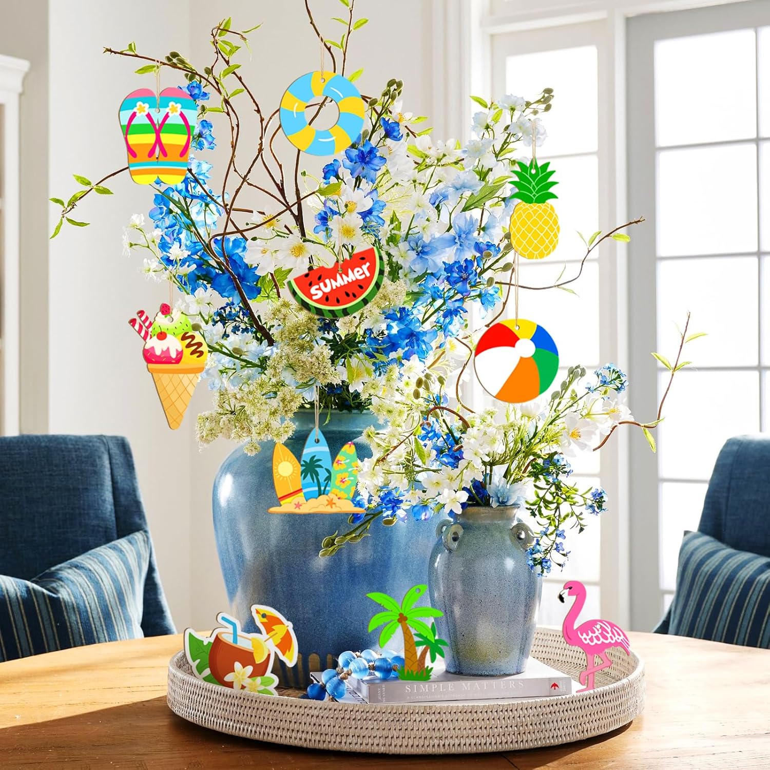 - Summer Cutout includes: 12 different shapes of blank wooden circles for free painting, each shape containing 3 pieces, (Watermelon Surfboard Slippers Coconut Tree ice cream, etc. blank wooden circles) 80 pieces of cotton, and linen braided rope