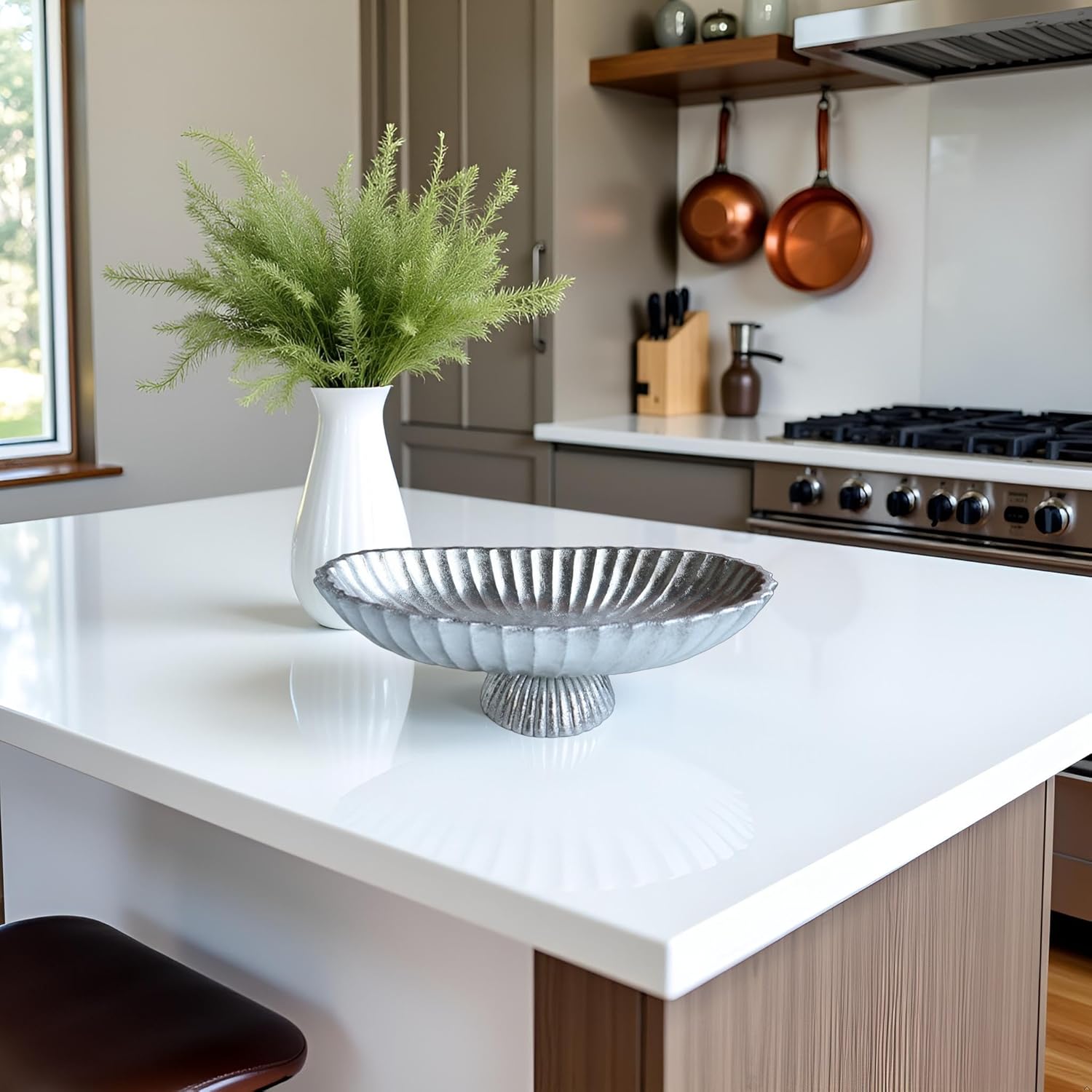 14.5" Large Decorative Long Bowl - Silvery Fluted Scalloped Decorative Bowls for Home Decor - Ruffle Decor,Stylish Key Bowl for Entry Table,Decorative Fruit Bowls for Kitchen Counter