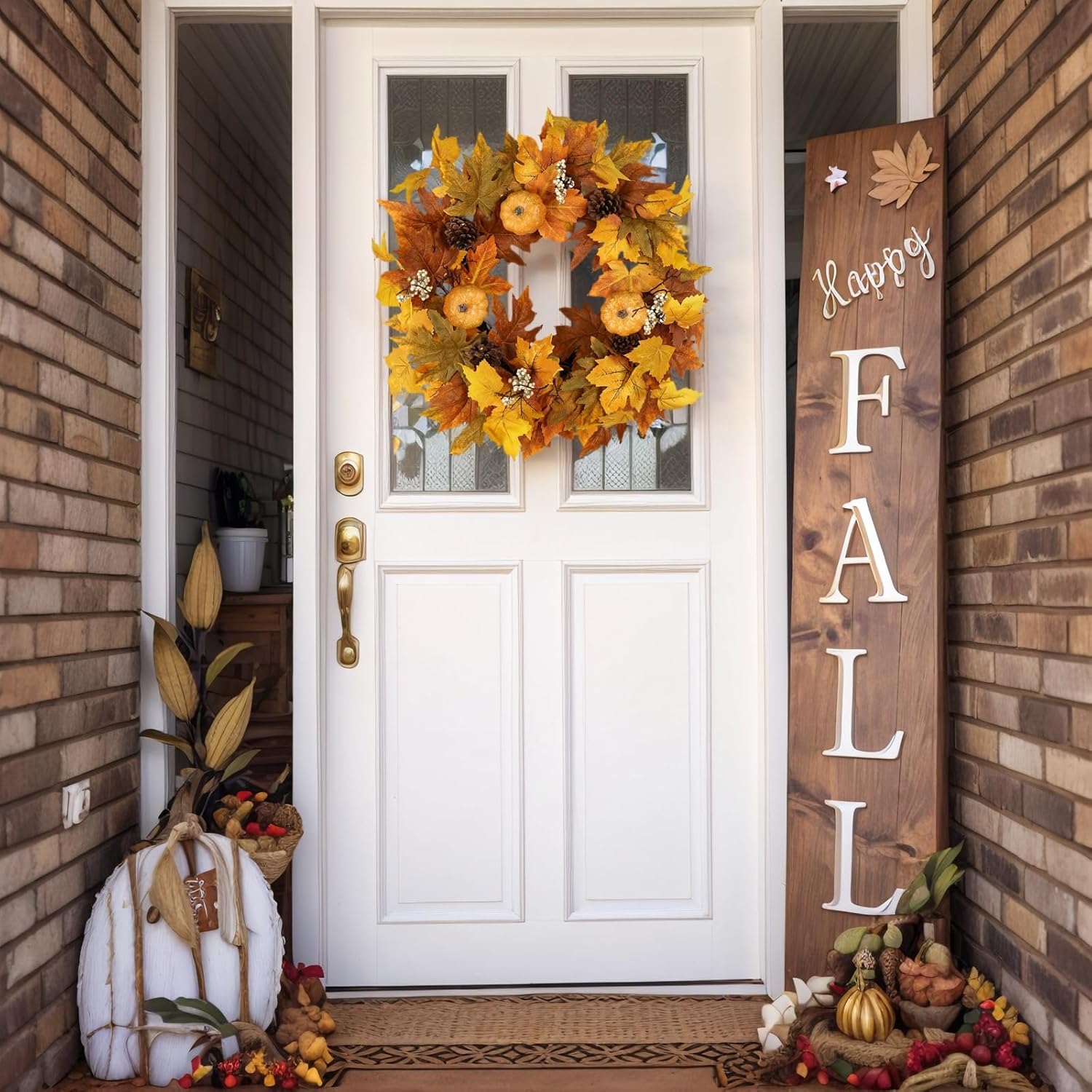 - 【Premium Quality Materials】Crafted with a focus on durability and visual richness, this 22-23 inch fall door wreath for front door is designed to maintain its vibrant colors and lifelike details throughout the season. Each element is carefully assembled to create a full, lush appearance that stays fresh and welcoming.Built to last, it offers a reliable and beautiful display you can enjoy autumn after autumn