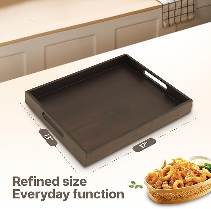 - [METICULOUSLY REFINED]: Our wooden serving tray is hand-finished through over 10,000 micro-sanding strokes—leaving the surface irresistibly soft, almost mental-like to the touch. Perfect as a wooden decorative tray, rectangle tray, or coffee tray for tray decor, it elevates food trays for eating, bed food trays for adults, serving platters and trays for parties, or party serving trays and platters.