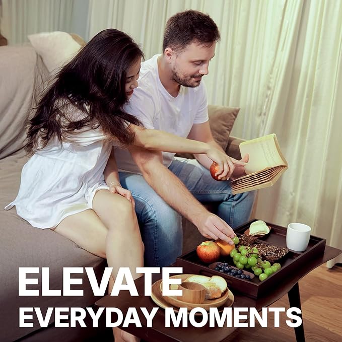- [BUILT-IN HANDLES]: Serving has never been easier with integrated handles that make it simple to carry from the kitchen to the table. Whether you're serving breakfast in bed, snacks for a party, or drinks on the patio, this tray provides a steady, comfortable grip.