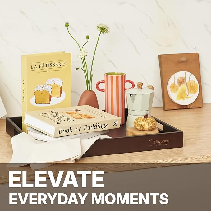 - [VERSATILE ACROSS SPACES AND OCCASIONS]: Whether you’re serving breakfast in bed, styling a coffee table, organizing your countertop, or setting up a charming outdoor picnic—this tray does it all with quiet elegance. Its timeless design moves effortlessly between rustic kitchens, modern living rooms, or cozy patios, making it as functional as it is beautiful.