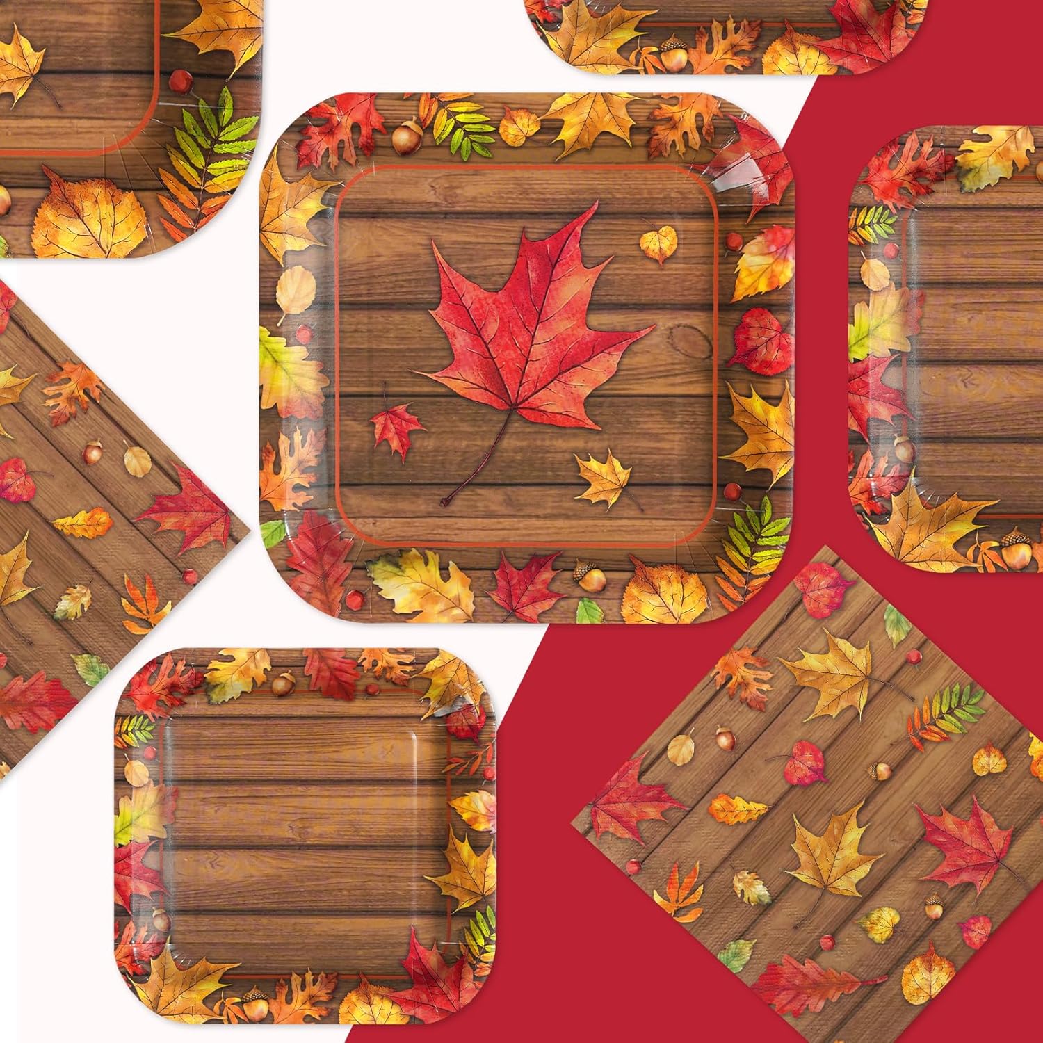 - 【Vibrant Fall Maple Leaf Design】Our autumn birthday decorations feature classical watercolor fall maple leaves wood grain patterns, which are rich and vibrant. Thanksgiving wooden party decorations create a welcoming atmosphere, transforming your party into a magical fall paradise and impressing your friends and family