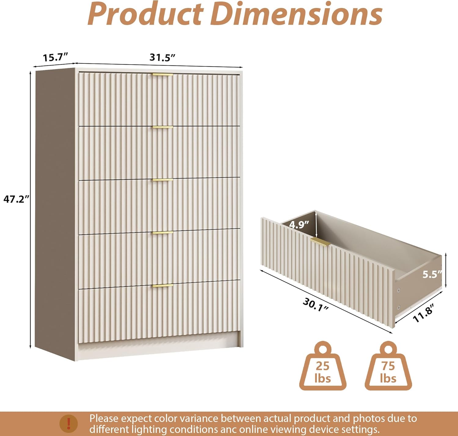 - Safety & Stability: Our fluted dresser features a dual anti-slip design, ensuring drawers stay securely in place, while anti-tipping straps provide added stability. The reinforced base and smooth damping system enhance structural integrity, offering reliable support for everyday storage needs.
