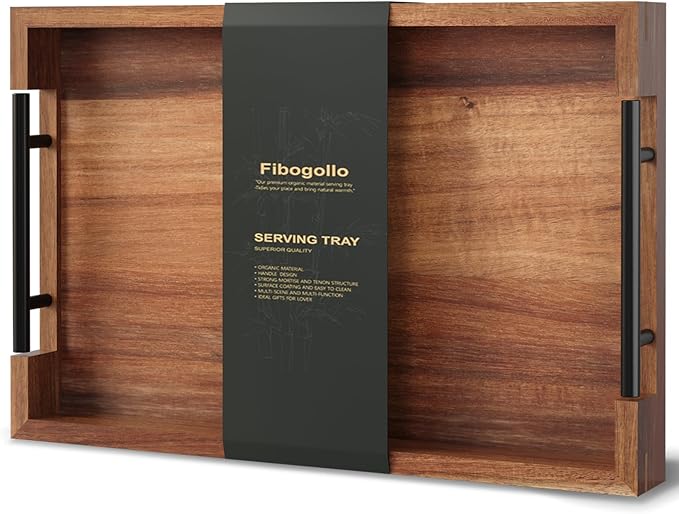 - 【Premium Material, beautiful and durable】 Crafted from carefully selected natural acacia wood, this piece retains the delicate tactile feel of the original wood grain. The surface is hand-polished and treated with eco-friendly lacquer, achieving a smooth and lustrous finish that is moisture-resistant and durable. The natural subtle fragrance and understated hues of the Acacia Woodimbue the tray with a rustic charm, allowing it to harmoniously integrate into any space while fostering a serene and soothing ambiance.