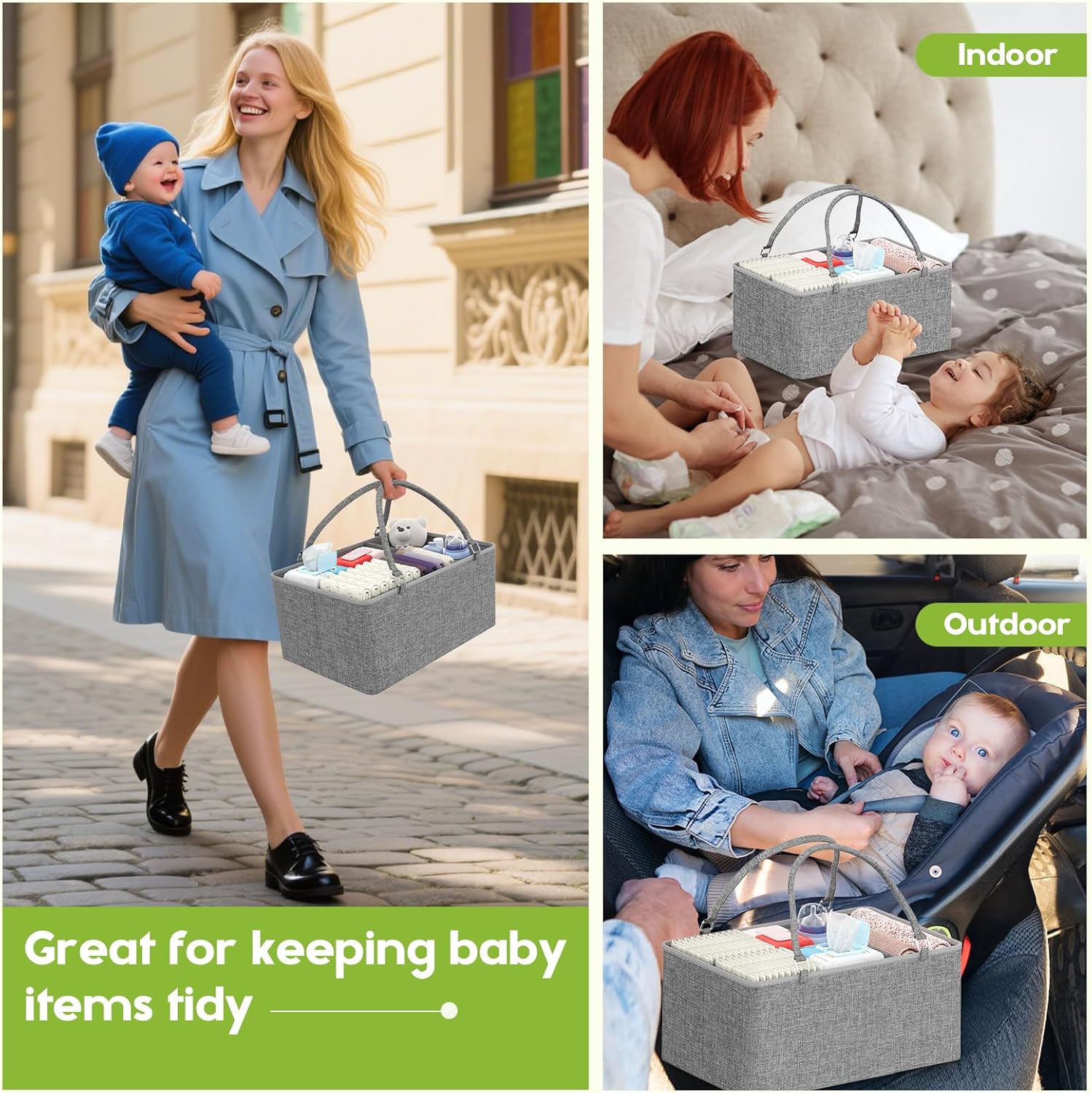 - [2 in 1 Design]Designed for ultimate convenience, this diaper caddy cart features a removable diaper caddy that allows you to take essentials with you wherever you go. Whether you’re in the nursery, living room, or out for a day trip, this diaper cart ensures you’re always prepared. This diaper caddy cart features removable dividers and Velcro straps on both tiers, allowing you to create custom compartments tailored to your needs, you can easily adjust the layout to fit your items perfectly.