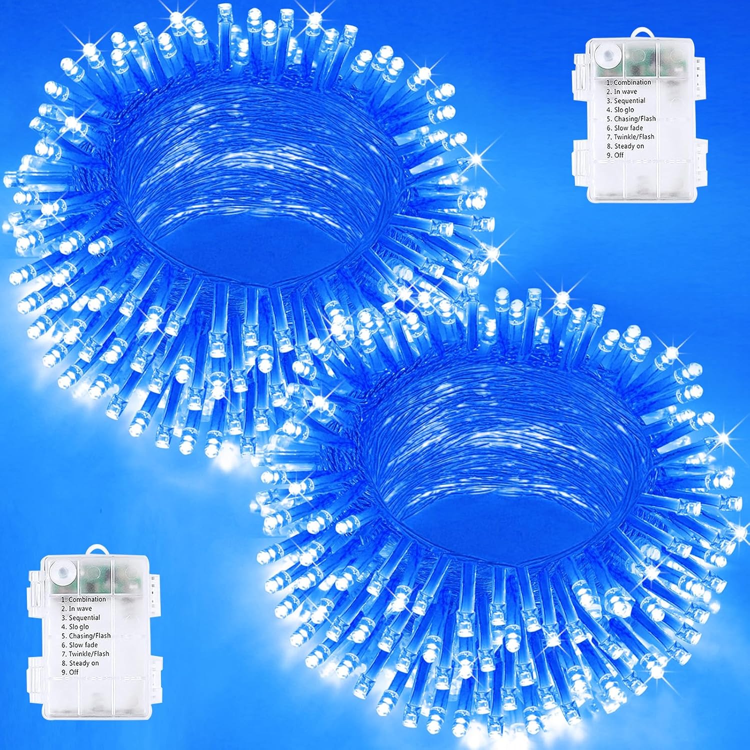 2 Pack Halloween String Lights Battery Operated with Timer, 66FT 200 LED Waterproof Battery Twinkle Lights, 8 Modes Fairy Light for Indoor & Outdoor Party Bedroom Garland Tree Christmas Decor (Blue)