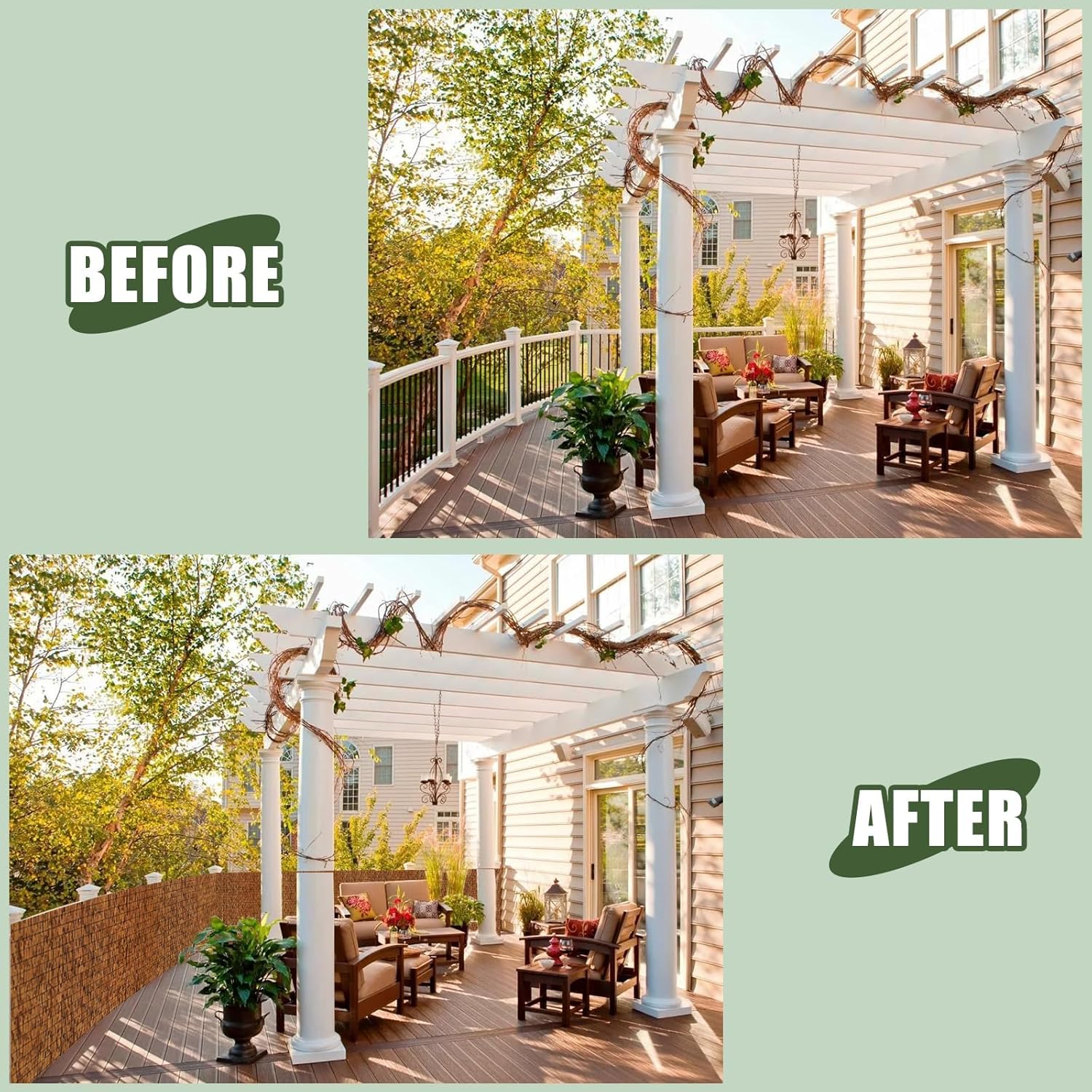 - 【More Shade and Privacy】Reed fencing is also ideal for creating privacy around pool areas, decking and verandahs, or simply to create a private little corner in your garden where you can relax away from prying eyes