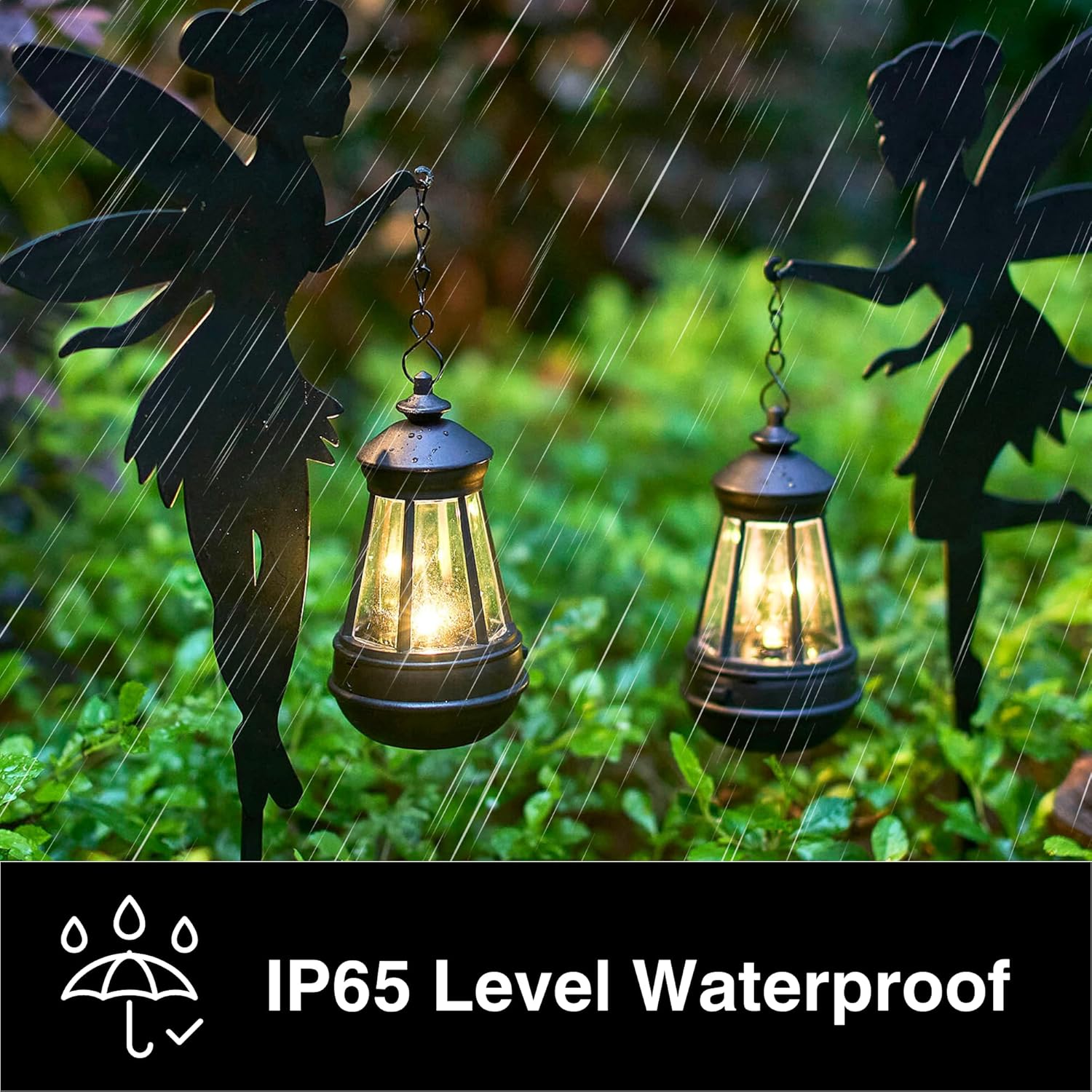 - 【 Tall Metal Solar Stakes 】Differing from other Fairy Statutes Solar lights for decoration, these angel figurines lights offer much taller height as 39 inch. The fairy garden kit comprises two straight poles with screws on both ends and one pole with a stake.