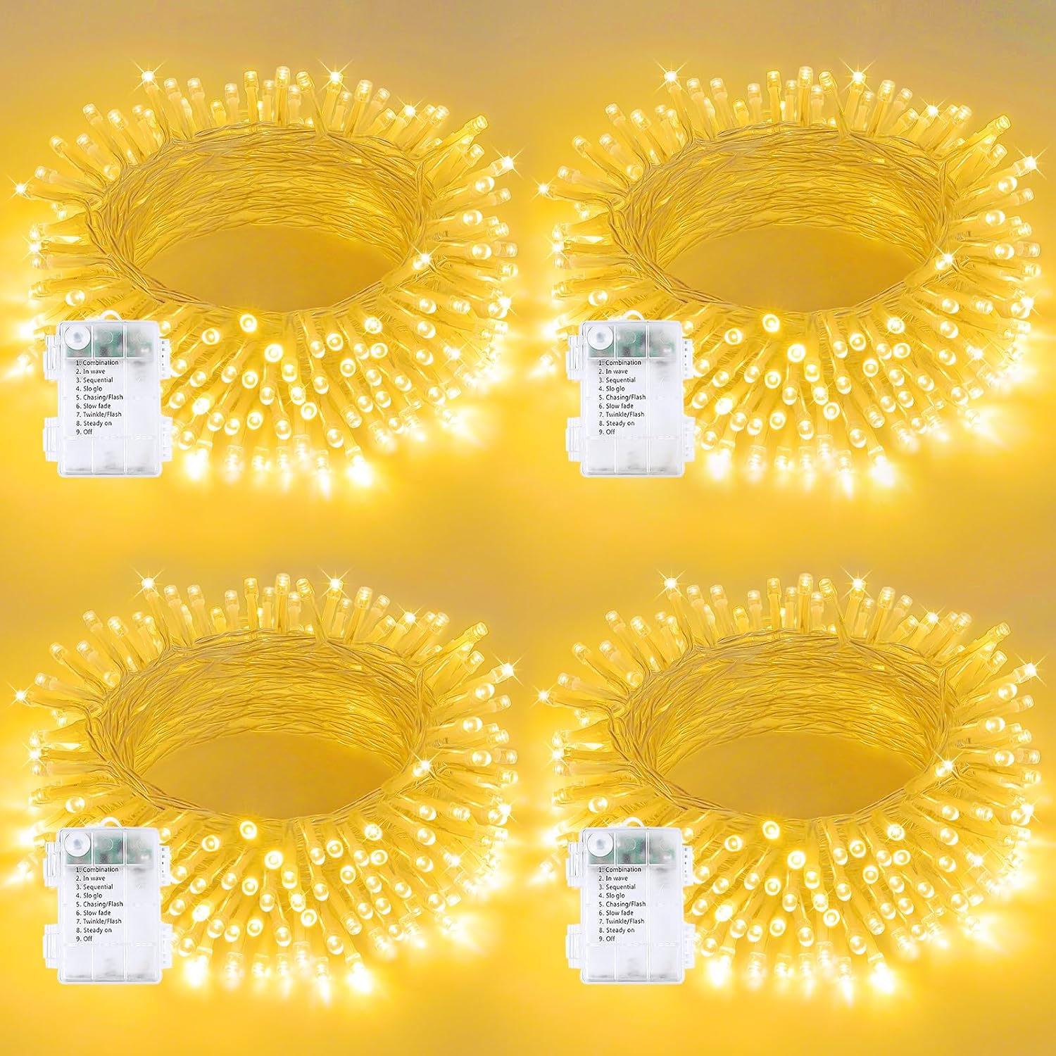 4 Pack String Lights Battery Operated with Timer, 66FT 200 LED Waterproof Battery Twinkle Lights, 8 Modes Fairy Light for Indoor & Outdoor Party Bedroom Garland Tree Christmas Decorations (Warm White)