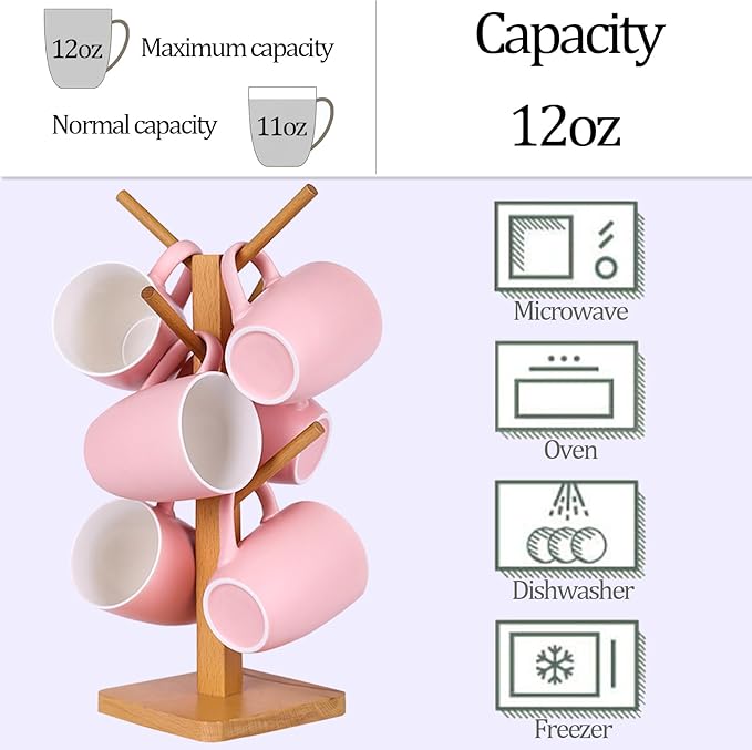 - Large Coffee Mug:The capacity of this ceramic coffee mug is the perfect size for daily use at home or in the office. The 6-piece set of pink coffee mugs is easy to serve guests or use throughout the day. These mugs can be used for various beverages such as coffee, tea, milk, and hot chocolate, allowing you to enjoy your leisure time with friends in different scenarios!