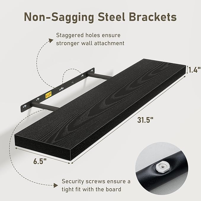 - Easy To Assemble: This floating shelves not only come with stainless-steel galvanized invisible brackets, but also equipped a fixing screw at the bottom to fix the shelf on the support rod, which solves the problem of sliding and is not easy to damage, and can be used for a long time. Instructions, magnetic level, drywall anchors, and screws included. This is great because you can easily mount these rustic shelves Gap-Free to any surface in less than 10 minutes