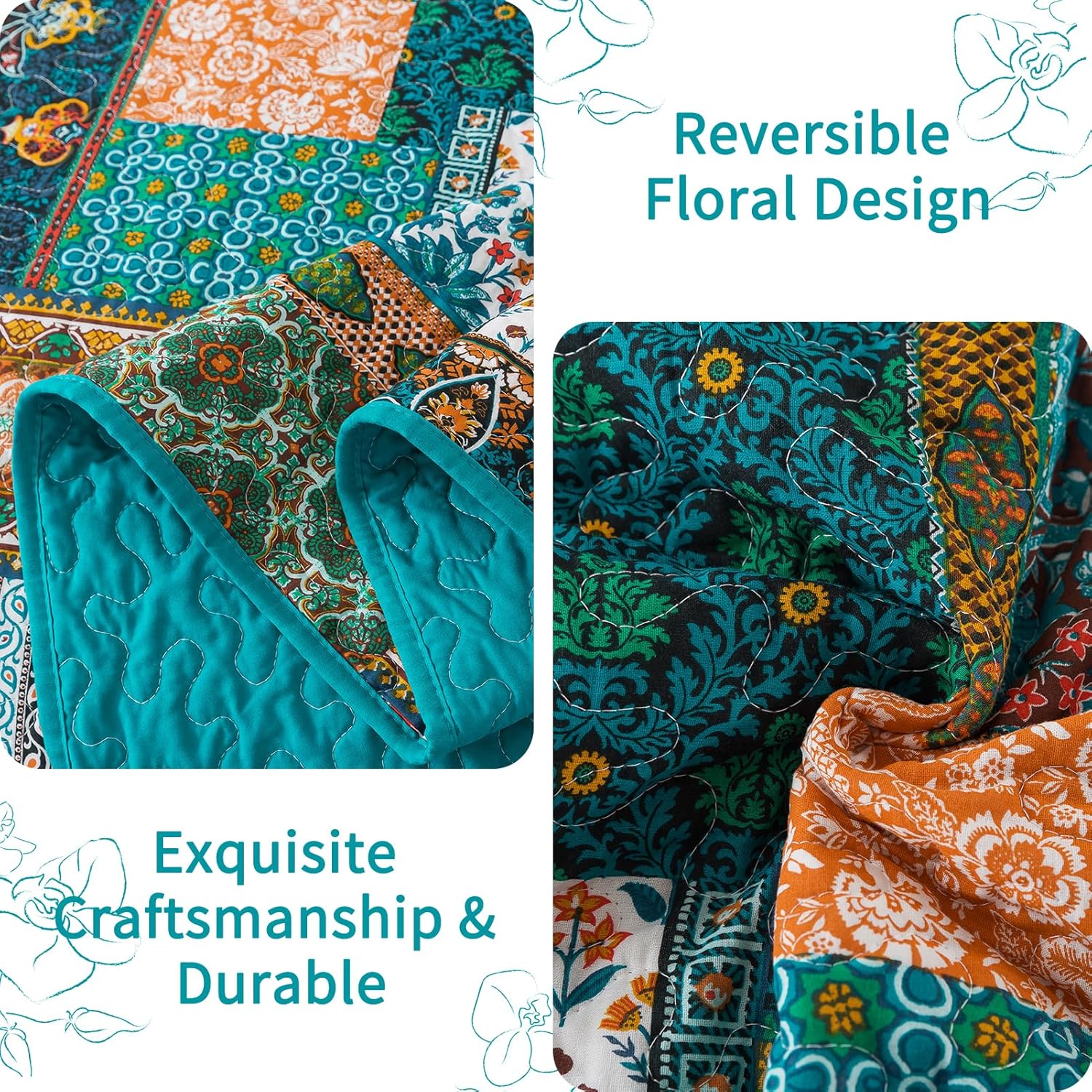 - 【All-Season Cotton Comfort】 Thoughtful 3-layer queen size quilt bedding set design: cotton top: Skin-friendly softness; cotton filling: Lightweight warmth; microfiber base: Non-slip temperature control. This breathable queen quilt transitions seamlessly from spring bedspread to winter coverlet.