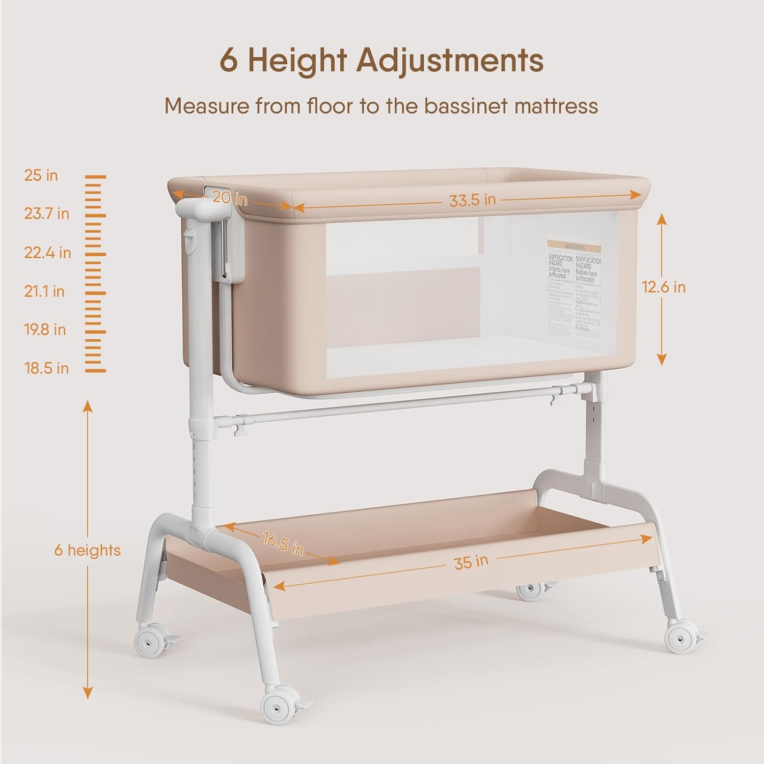 - 【Large Under-Bassinet Storage Basket & Smooth-Rolling Wheels with Brakes】Let you move the bedside bassinet around your home with ease. Lockable brakes ensure safety and stability when stationary.