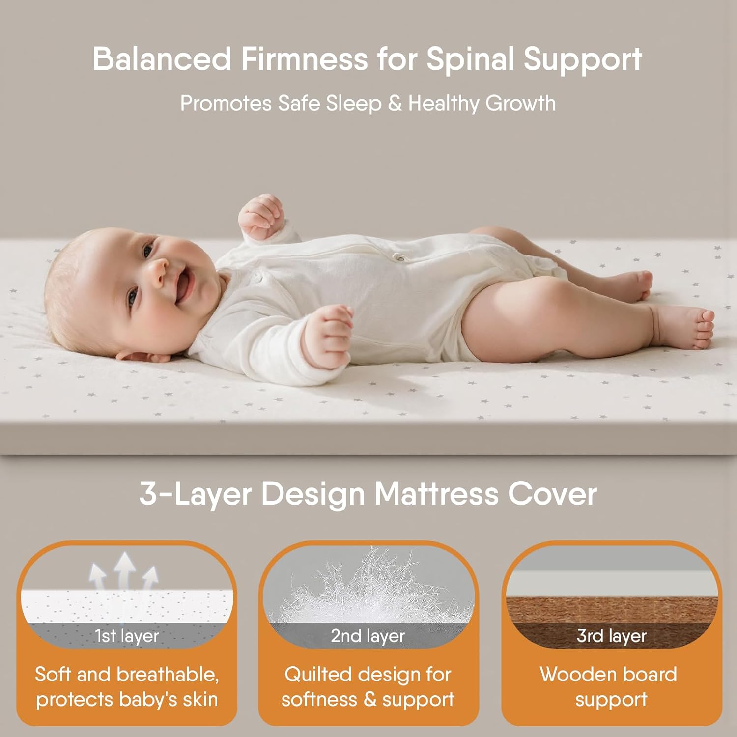 - 【Balanced Firmness for Spinal Support Mattress】Provides the ideal balance of firmness and comfort—firm enough to promote proper spinal alignment, yet gently cushioned to provide gentle comfort for peaceful sleep.