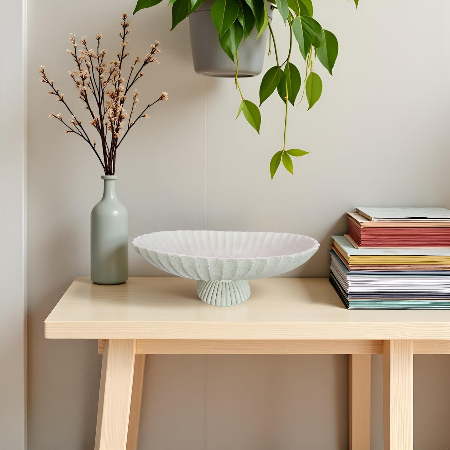 14.5" Large Decorative Long Bowl decor - Fluted Scalloped Decorative Bowls for Home Decor - Ruffle Decor,Stylish Key Bowl for Entry Table,Decorative Fruit Bowls for Kitchen Counter,Light Gray
