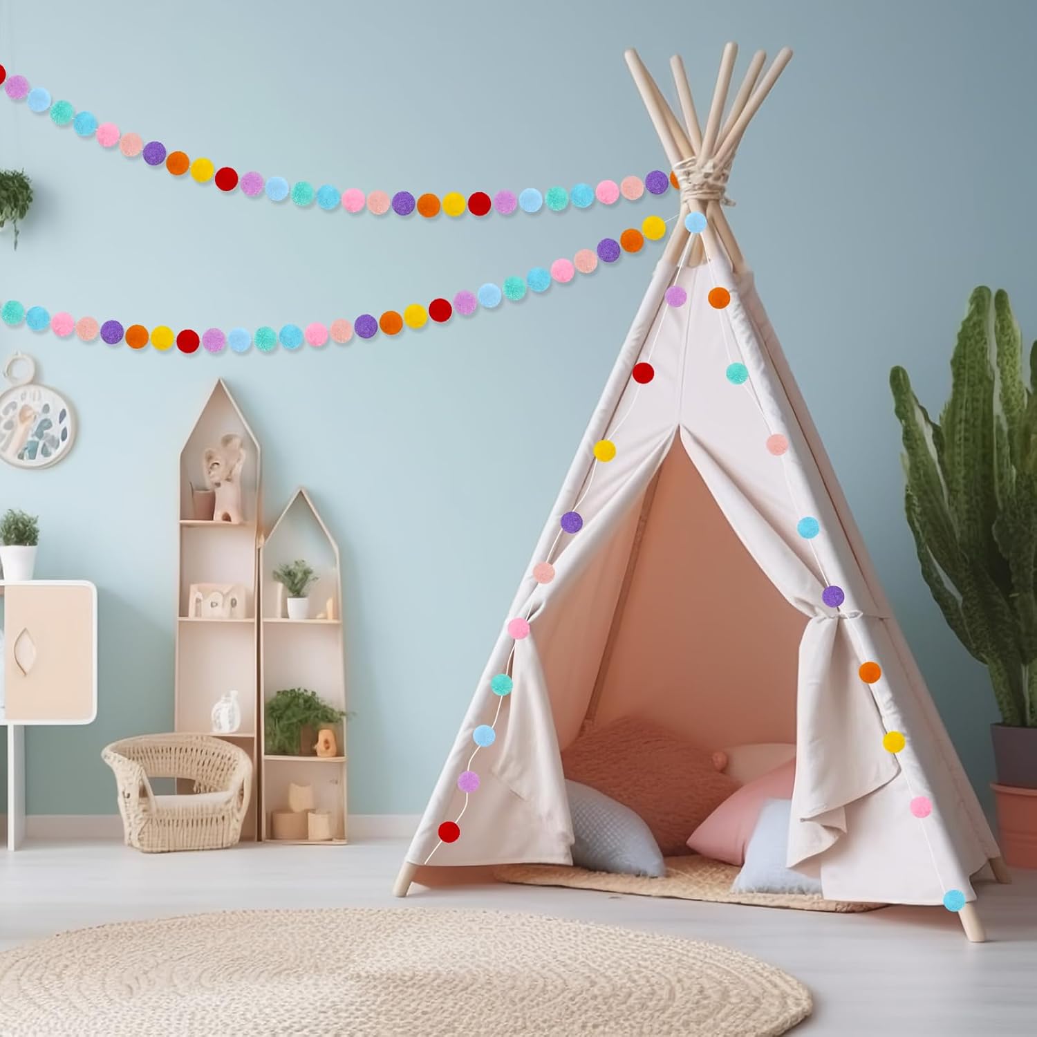 4 Pack Colorful Pom Pom Garland, 26.5 Feet Long Felt Ball Rainbow Banner, 30 Balls 10Color Felt Ball Garland for Christmas Tree Decoration Party Hanging Decor