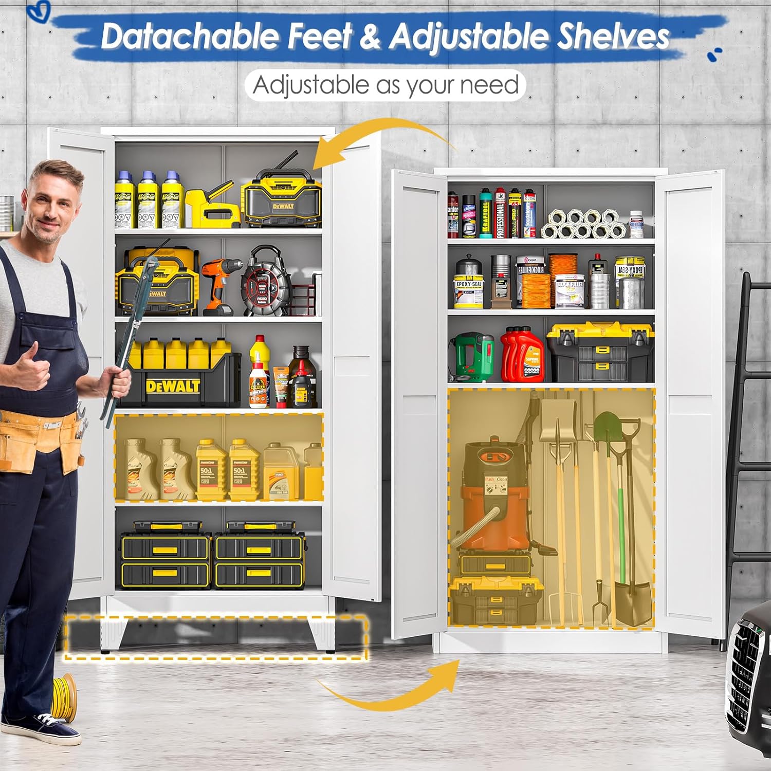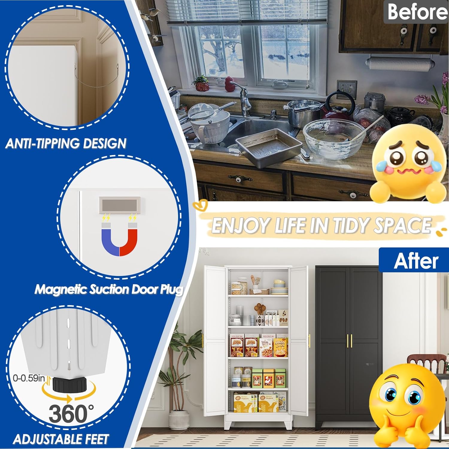 - 『♕EASY Quick Assembly』The steel storage cabinet adopts an freestanding design, and buffet sideboard cabinet is a detachable structure as a whole. You only need a screwdriver to easily complete assembly. The cabinet with doors and shelves comes with installation instructions, and all parts are labeled to help you complete the installation faster. You can have a sturdy and stable pantry storage cabinet without spending a lot of time and effort. Suggest two adults gather together