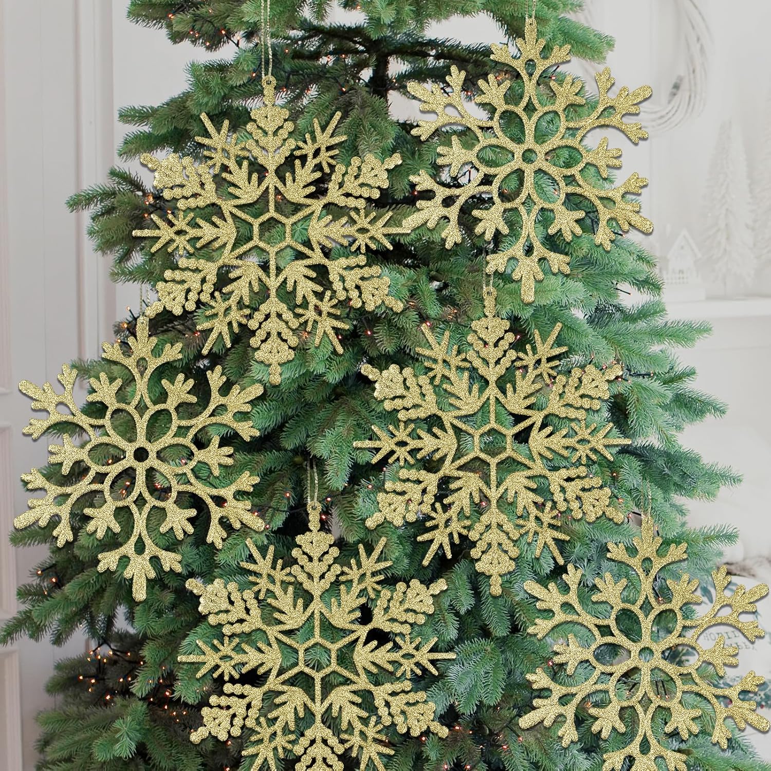 - Large Gold Snowflakes: Our Christmas snowflakes ornaments feature an elegant gold design with stunning sparkling details for a beautiful, glamorous look. Glitter gold snowflakes create a gorgeous winter wonderland display —perfect for festive seasonal decor